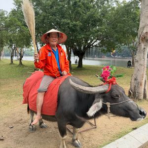 朝から急な階段を山登り、自転車など体力勝負です。ただ、頂上は絶景。チョー気持ちいい。下山後のスプライトが体に沁みて旨かった。川下りは搭乗時間も長く、ハロン湾よりもこちらの方がおススメです。水牛は写真を撮るだけで乗れません。ランチのヤギ焼肉はままあです。