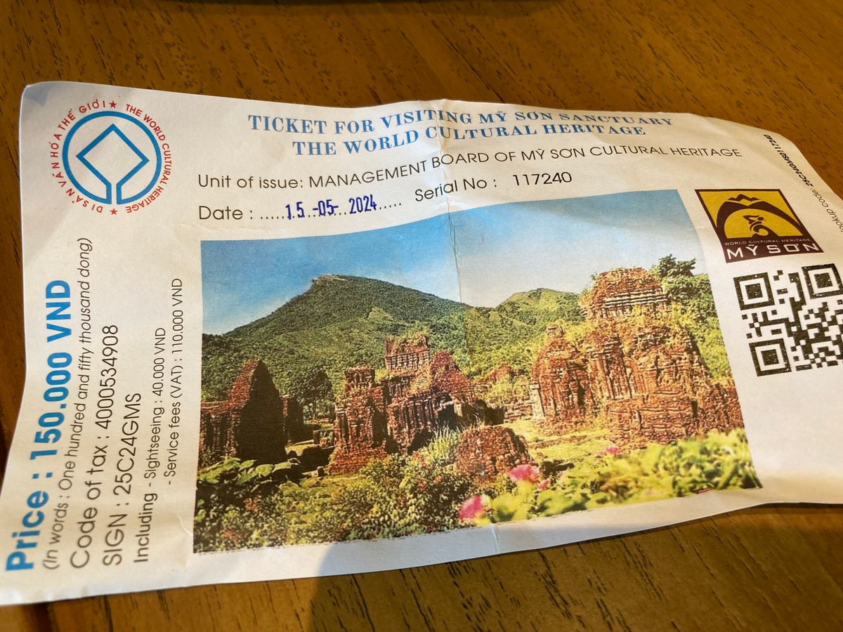 9時にミーソン遺跡到着、ドライバーさんのスマホの画面で帰りの出発時間を再確認して下車。 見学時間は2時間20分。