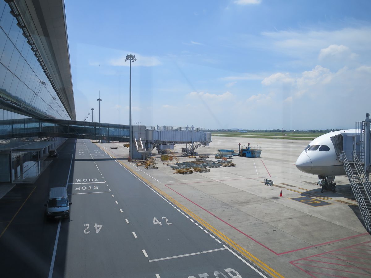 関西空港からのジェットスター便で、ハノイ空港の定刻0時55分着が、20分遅れて到着。