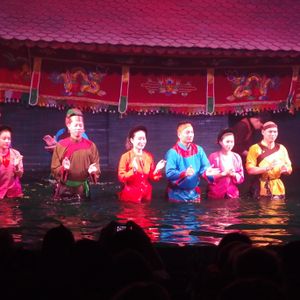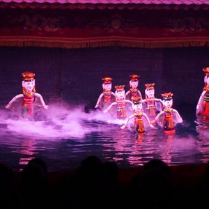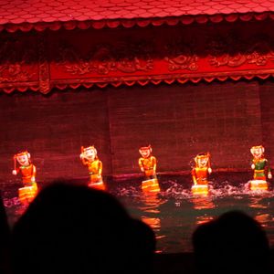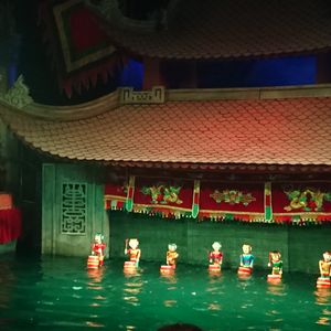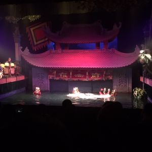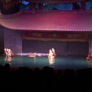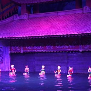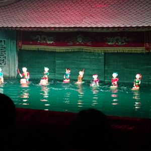 伝統芸と言われている水上人形劇はこじんまりとした劇場内で、学芸会のような人形劇が繰り広げられます。音楽はベトナムの伝統的な楽器を使った生演奏が聴けます。語はベトナム語ですが、わからなくても、人形の動きや、途中の火花の演出などを見て楽しめます。でも1度見たらいいかなという感じでした。