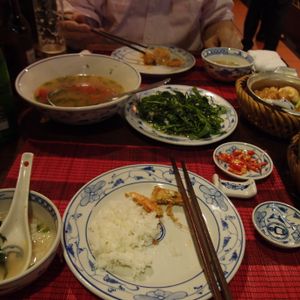 夕食では、ベトナム家庭料理を食べました。空芯菜炒めが特に美味しかったです。ドリンク代は料金に含まれていないので、注意してください。
