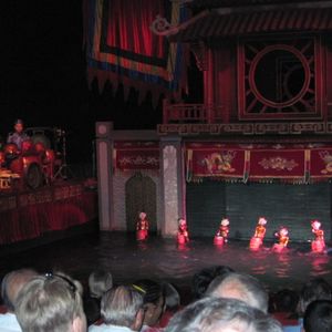水上人形劇は、テンポ良く一つの出し物の時間も短く解説などなくとも充分楽しめます。問題は2点、席がかなり後ろだったこと、舞台近くの席は値段が高い様です。ストロボの光が激しく目が疲れました。劇場はホアンキエム湖の畔にあるので、日程に余裕があれば自分で並んで良い席を求めるのも良いでしょう。ツアー参加者は私たち夫婦だけでしたので、劇場にも歩いて行き、食事ものんびり楽しみました。