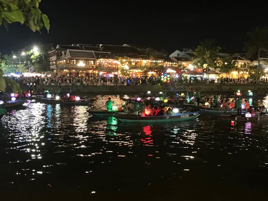 ナイトマーケットや有名バインミー店へ食事へ行ったり、再度ガイドさんと落ち合ってから、ガイドさん仲介で船へ乗りランタン流しを楽しみ、とても有意義なホイアン観光でした。