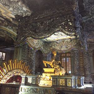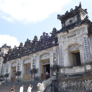 フエに着くと、カイディン帝廟、フエ王宮、ティエンム─寺院の順に観光しました。もっとたくさん見どころはあると思われますが、すご~く暑かったので、3つくらいでちょうど良かったと思います(それ以上廻っても、おそらく集中できなかった)。