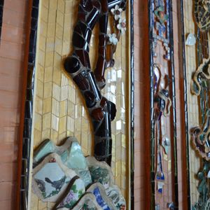 ダナンから参加、しかし遠かった。片道2時間です。ホテルで頼むドライバーは、混沌な運転で疲れるが、ツアーのドライバーは無理な追い越しをしないので、安心して座っていられるし、疲れがすくなかった。しかしフエの王宮は遠かった。途中日越経済協力で完成したトンネルを越え、フエへ。トンネルを抜けてから一時間。田園風景を楽しみつつやっとカイディン帝廟に到着。日本のビール瓶を装飾に使ったとは、合理的というべきか、もっと他の意味があったのか。日露戦争の勝利で勇気づけられたベトナム人の中には、フランスからの独立運動が起きた。象徴的に使ったのかもしれないと、想像したりしながら苦渋の生涯を送ったカイディン帝に思いをはせた。