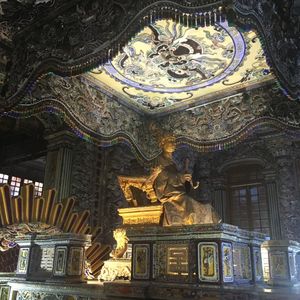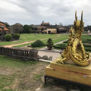 当日はあいにくの雨で、気温も思った以上に低かったです。この季節は厚手の上着があったほうが良いですね。見学した中ではカイディン帝廟が一番凄かった。内装が豪華です。王宮は派手さはないものの、規模が大きく、回廊に実際に使われていた時代の写真がたくさん飾ってあり、本当にここに皇帝が住んでたのだなぁ〜と不思議な気持ちになりました。