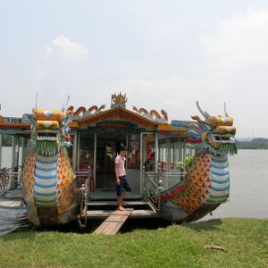 集合場所のホテルに時間通りに来てもらい、私たちの他に2組、計6人の参加者でフエまで2時間強のバスツアーがスタートした。ガイドさんは、とっても一生懸命なのは伝わるが、たどたどしい日本語で、希望を言えば、もう少しフエの歴史や皇帝の話を聞きたかった。また、3ヶ所の見学は非常に暑かったせいもあるが、説明が少なく、後から持って来たガイドブックを見直して納得できた。食事は、宮廷料理で見た目にも美しく、味も美味しかった。最後にこちらの希望でお土産物屋と、フェバチョコレートにも寄ってくれて、マッサージ店も予約してくれた。総合的に満足です。