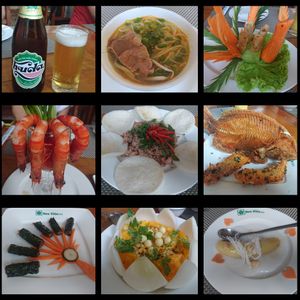当日は家族、カップル含みで約10人くらいの参加でした。思っていた通り、効率よく遺跡を回り、ガイドさんの説明を聞きフエの歴史も知ることが出来、また宮廷料理(写真)もとても美味しかったです。