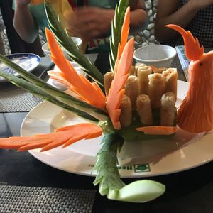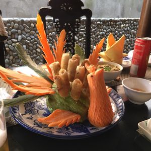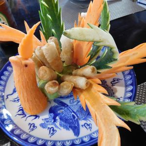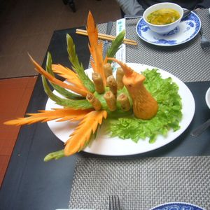 ガイドさんのご説明は、不明瞭な点も多く若干解り辛かった感はぬぐえませんが、フエでの宮廷料理は、見た目も華やかでとても美味しく感じられました。