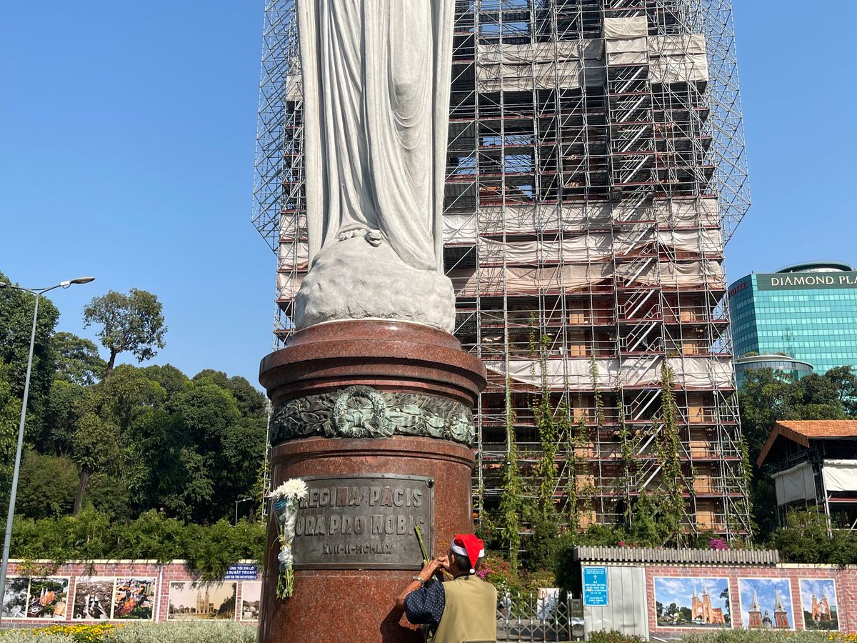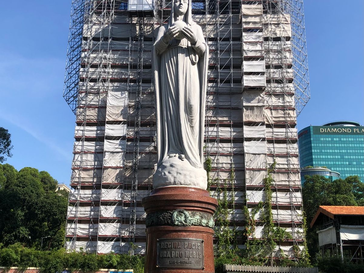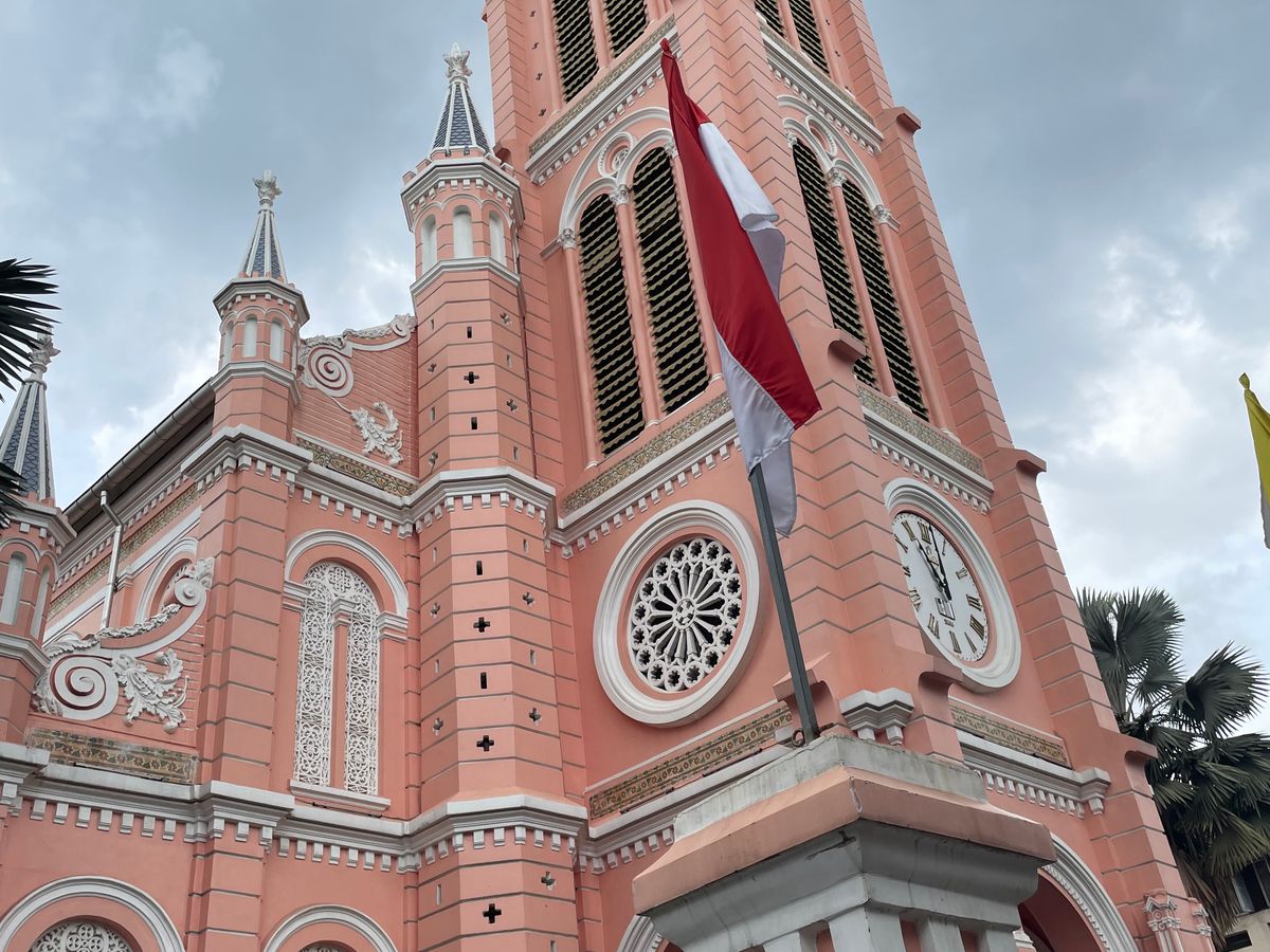 サイゴン大聖堂は修復中で覆いが被さり残念だったが、中央郵便局の歴史ある建物や、ピンクの教会など説明をしてくれる上にカメラマンの様に写メを撮ってくれました。