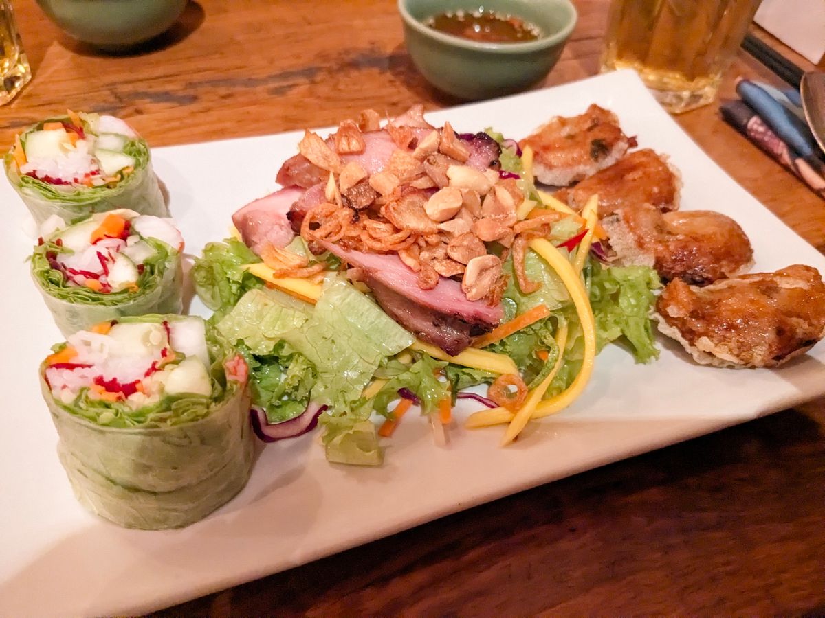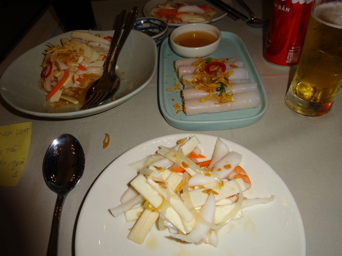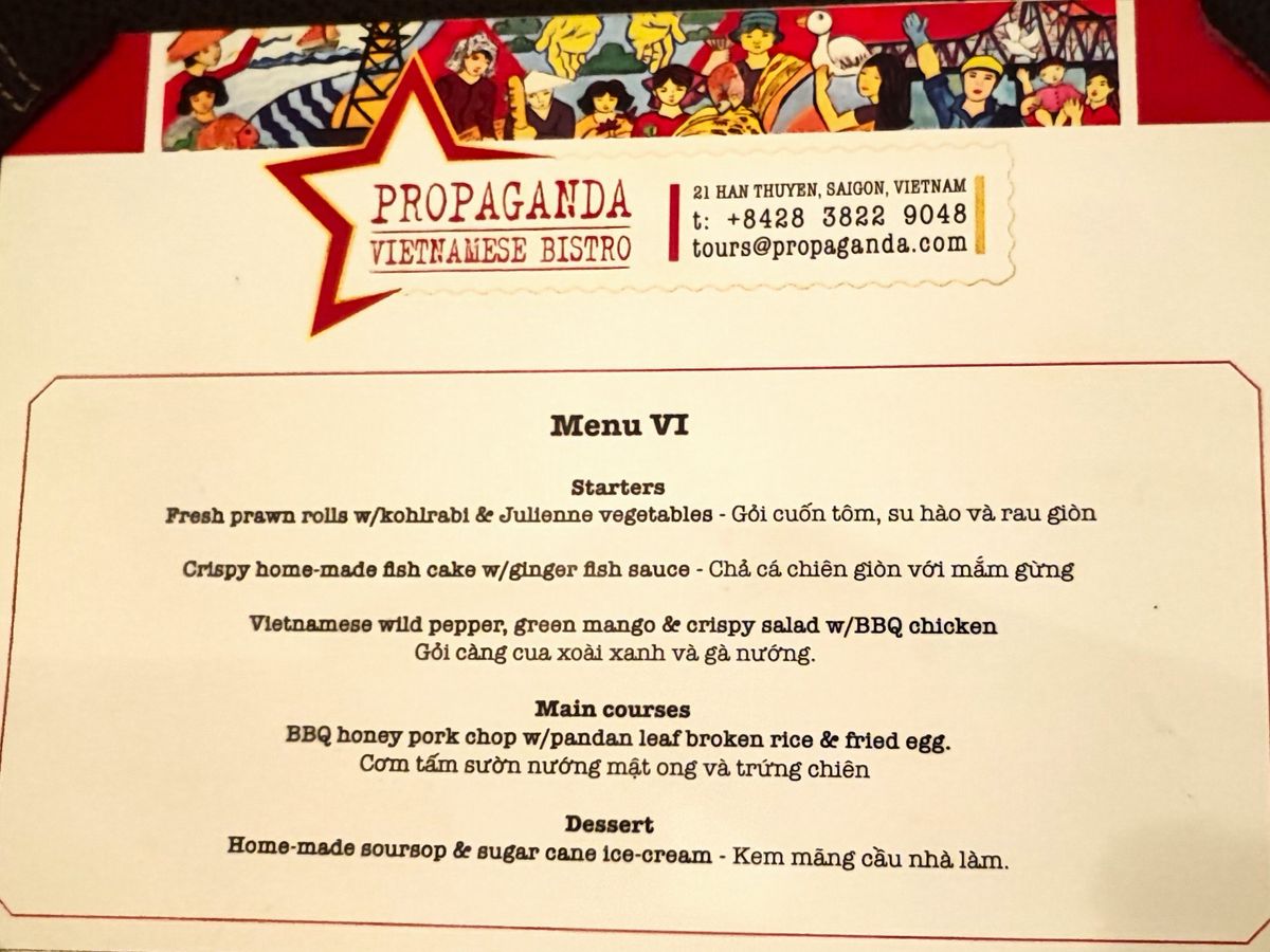 ドンコイ通りから路地に入ったエリアはフランス統治下アヘン工場だったが、その後閉鎖、現在はカフェやレストランがいくつか中庭風に営業しているおしゃれなエリアになっている。提供されたコースはホーチミンの名物の組み合わせ。初日の観光にはピッタシの半日観光でした。