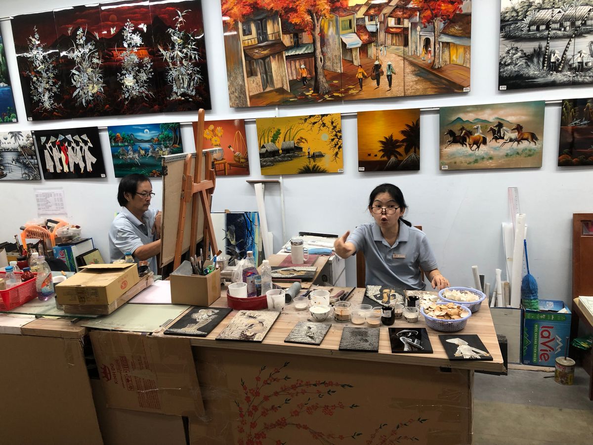 途中入ったベトナム漆塗りの工場は土産物屋併設でお決まりの場所だけれど、15分ほどで切り上げ(プライベートツアーの強みか)でした。