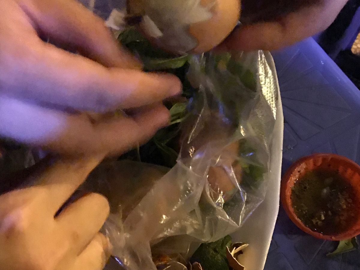 カメ池で食べた、ライスペーパーの香草巻きと、卵の中身をくりぬいて香辛料と一緒に戻して焼いた焼き卵、が美味しかったです。