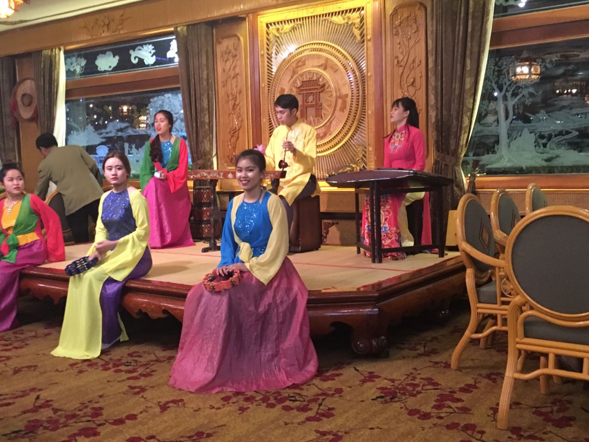 夕食はベトナムの音楽や踊りの催しがあり、大変良かったし美味しかったです。ビールは1本約5万ドン(約250円)。屋台では2万ドン(約100円)でお釣りがクルけど、「観光用レストランなんだからそのくらいスルでしょ!?」って思いますし、妥当価格だと思います。はい。