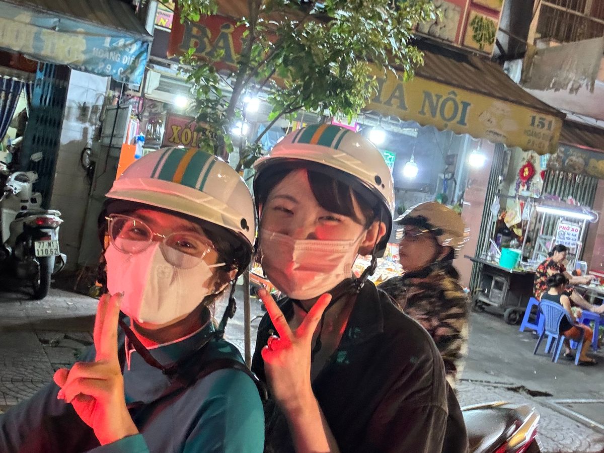 初めてバイクに乗ったのですが、安全運転で安心して風を感じることができたのがよかったですね。色々と走りながらも説明をしてもらえ、こちらの質問にもしっかり回答してもらえました。ガイドブックには載っていない屋台にも連れてってもらえ、ローカルを味わいました!ほんと楽しかったです。屋台料理では自分達の好きな物を注文しました。美味しくないから、やめた方がいいと言われ物もありましたが、チャレンジしたかったので、注文しました!うーん😅やっぱり美味しくなかったですが、とてもいい思い出になりました。