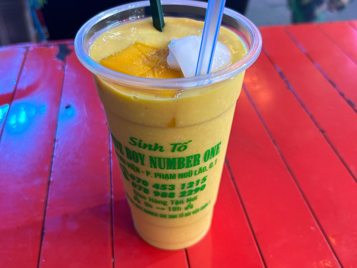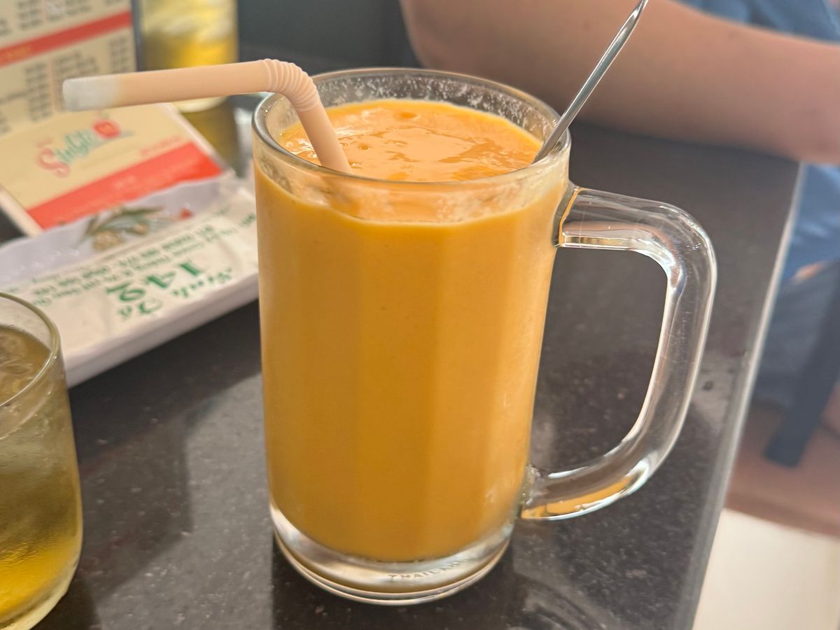 その後人気のスムージー屋さんにいき生中ジョッキのマンゴースムージーを頂きました。