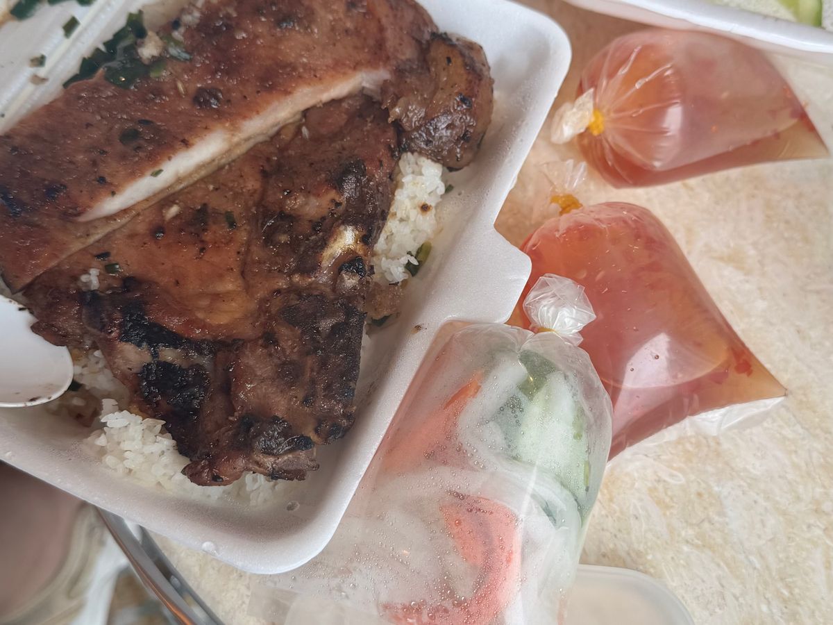 その後昼食にミシュラン掲載コムタムスォンに行きますがお腹が一杯と伝えるとテイクアウトOKだったのでテイクアウトしホテルに帰ってからいただきました。