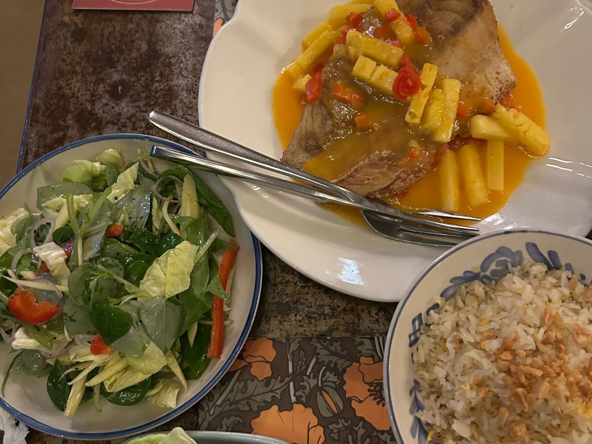 ディナーはどの料理にもマンゴーのソースやパイナップルなどフルーツが入っていました。フルーツが好きなので、とても嬉しかったです。全て美味しかったです!