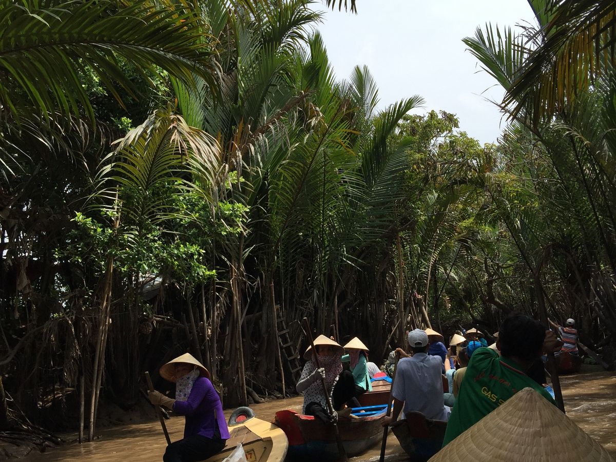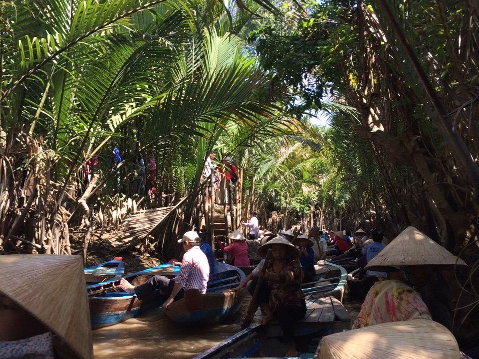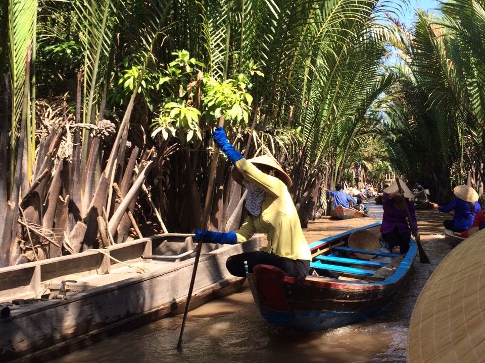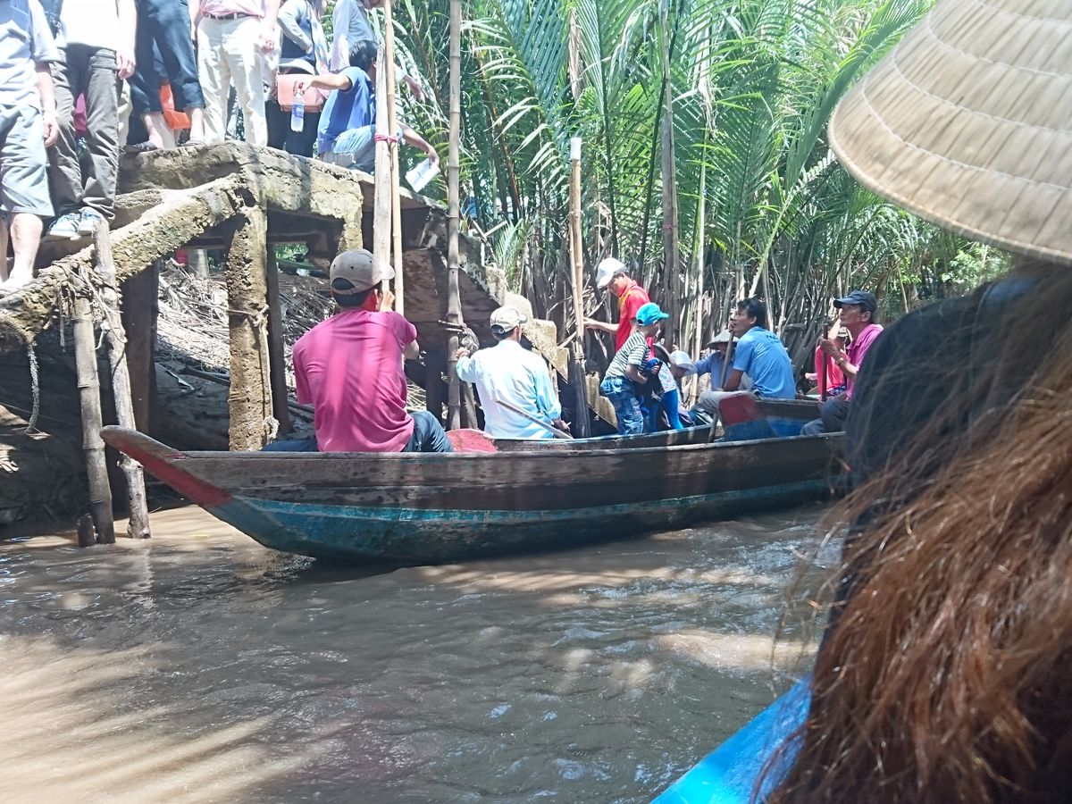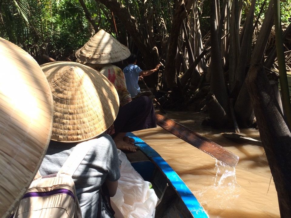 たくさんの船が連なってどんどん進む感じなので怖さなどはなく、自然を眺めながらいるとあっという間に終わりました。ボートを漕いでくれる人は現地の言葉しか話さないので、会話はできなかったけど、漕ぐ体験をさせてくれたり、ベトナムの帽子を貸してくれたり、ジェスチャーを交えながら交流できました。(チップは不要でした)