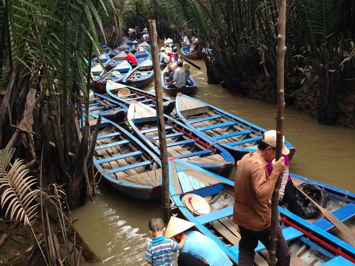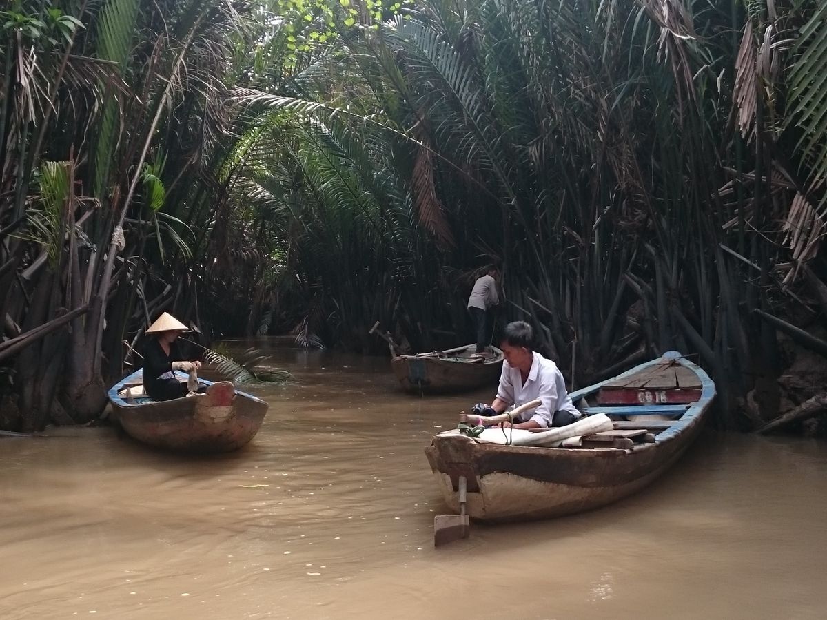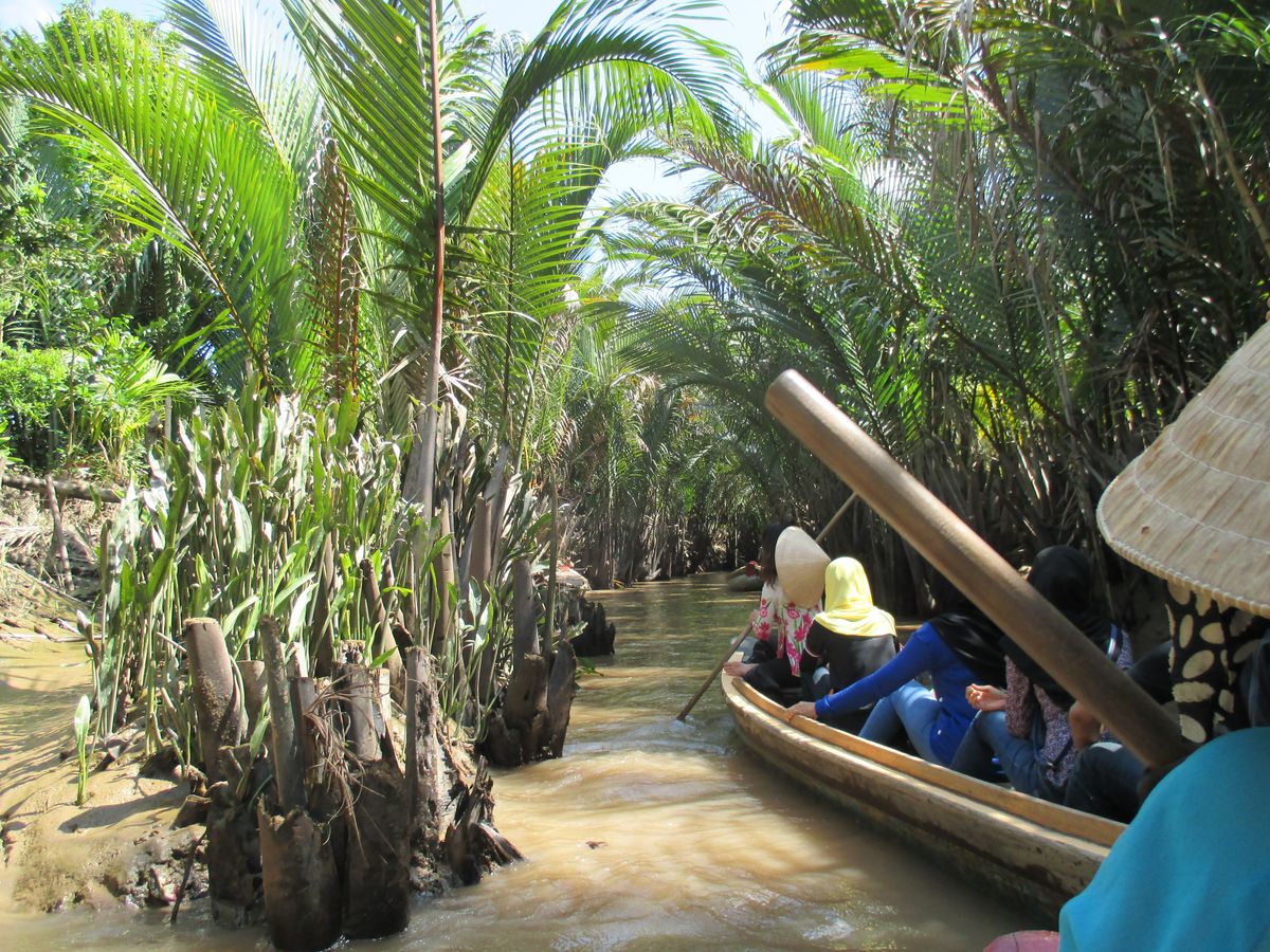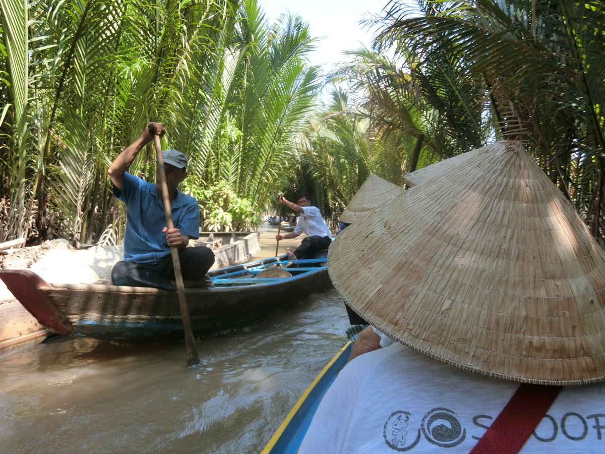 たくさんの船が連なってどんどん進む感じなので怖さなどはなく、自然を眺めながらいるとあっという間に終わりました。ボートを漕いでくれる人は現地の言葉しか話さないので、会話はできなかったけど、漕ぐ体験をさせてくれたり、ベトナムの帽子を貸してくれたり、ジェスチャーを交えながら交流できました。(チップは不要でした)