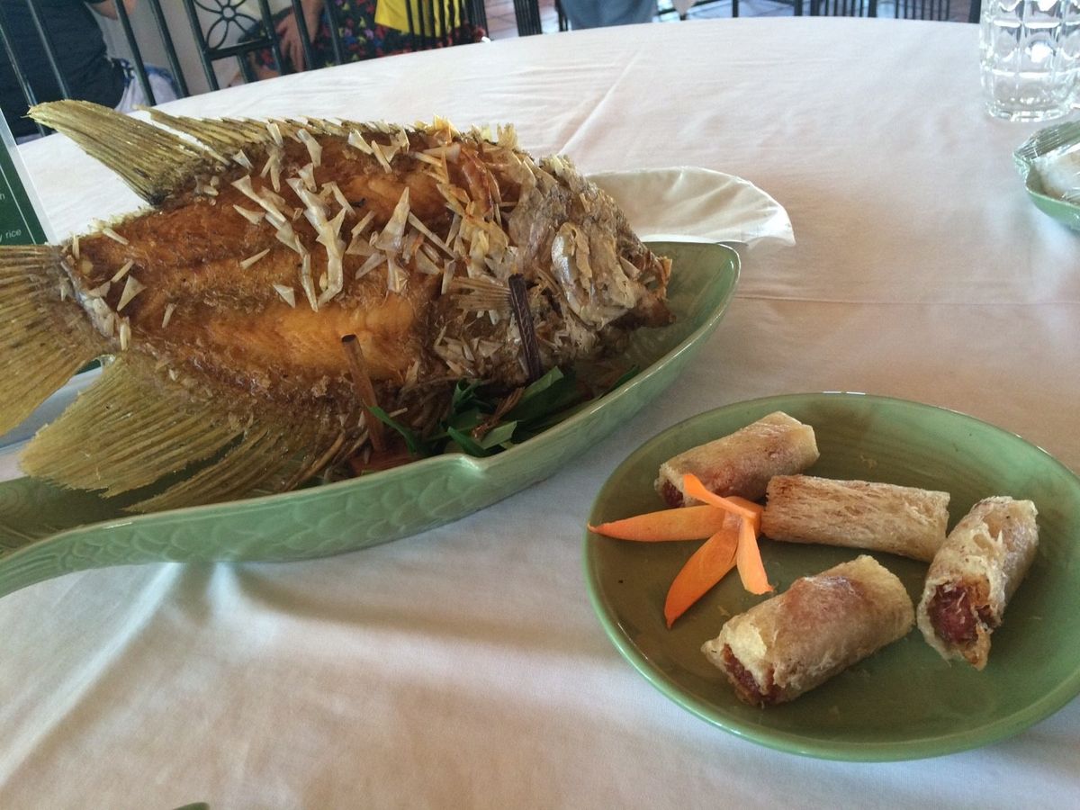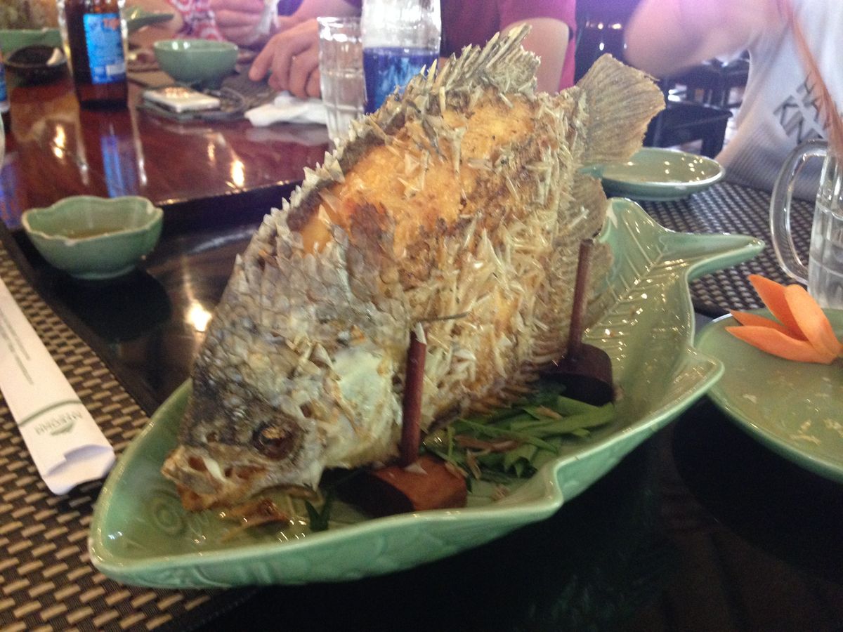 ベトナムなので当然ですが、料理GOOD!エレファントフィッシュは、お店の人が包んで作ってくれました。