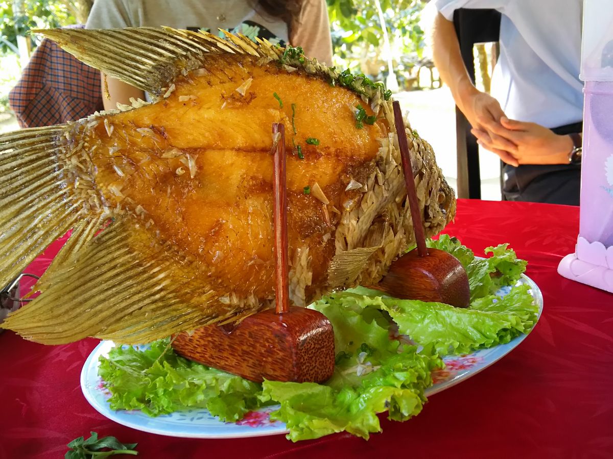弊社では、せっかくお越しいただいたからには、是非メコンデルタならではの郷土料理をご賞味頂きたいと思い、象耳魚などの珍しいメニューを中心にご用意させて頂いております。