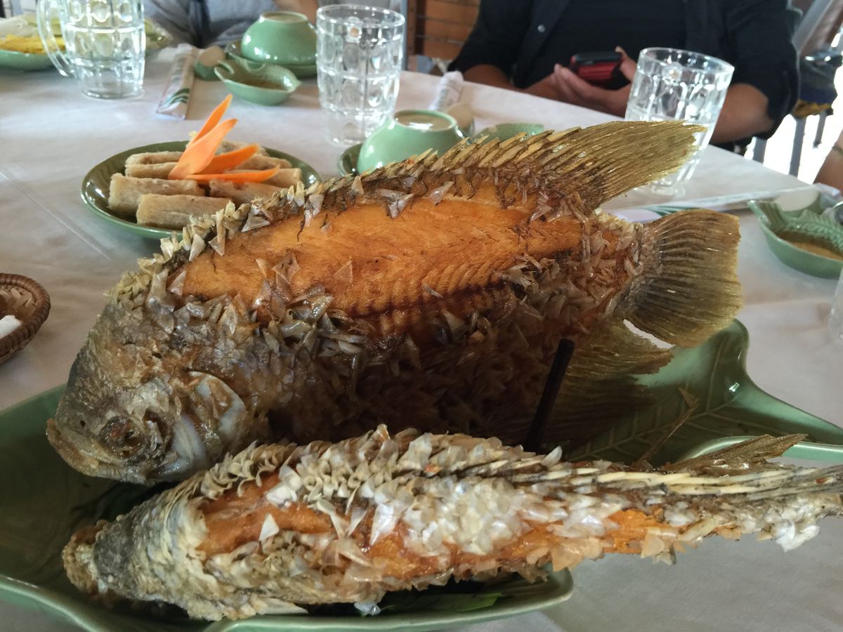 お昼ごはんは、皇太子さまも訪れたレストランでメコンの郷土料理をいただきました。きれいなところで安心していただけました。