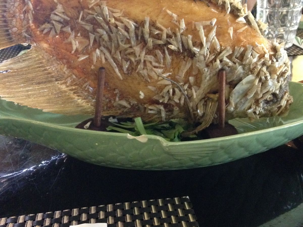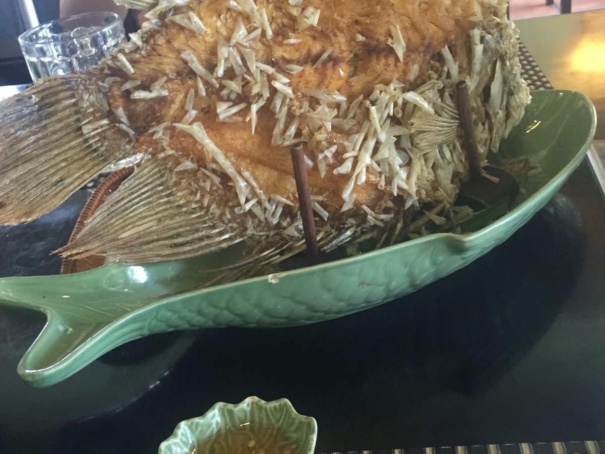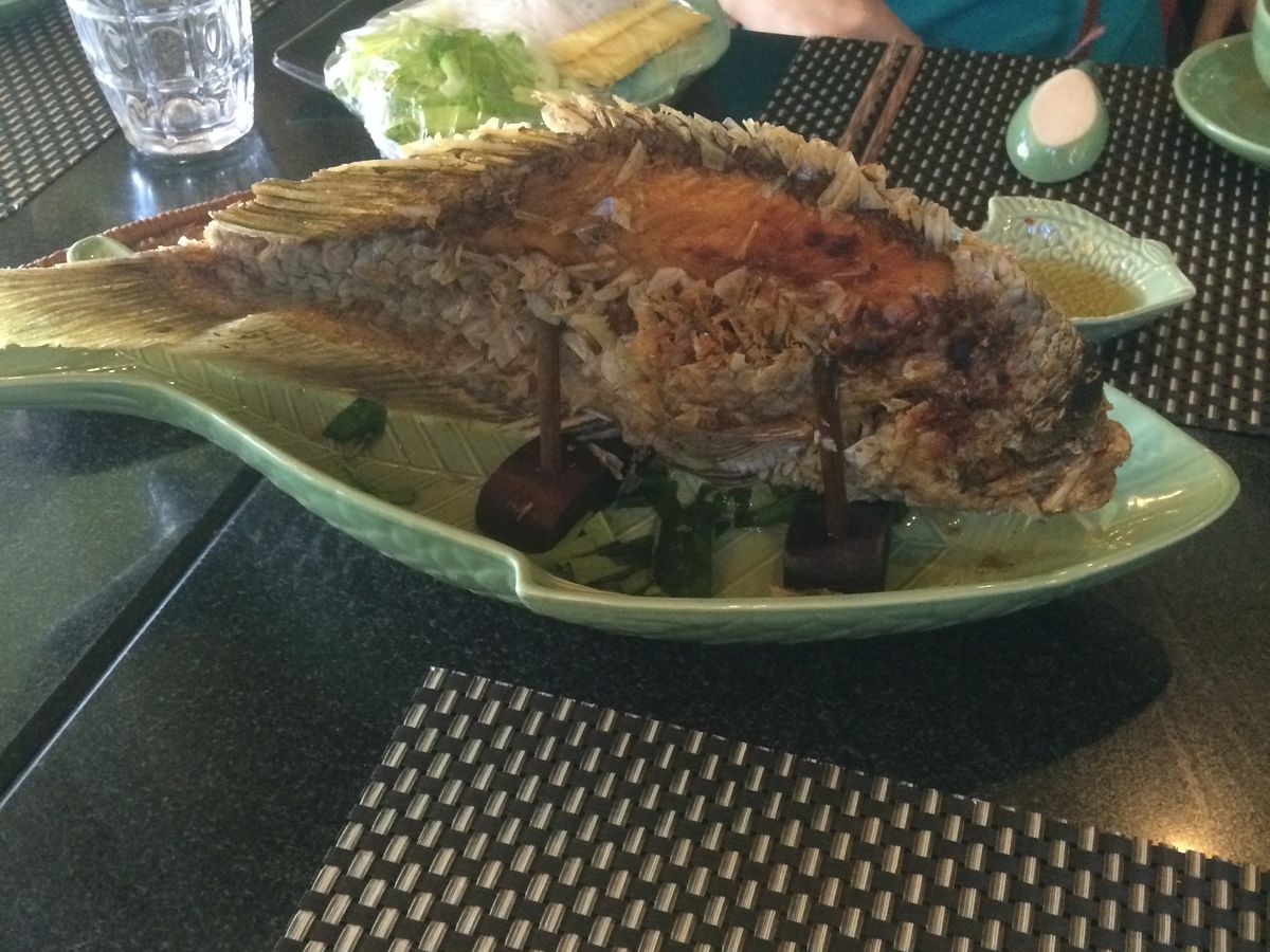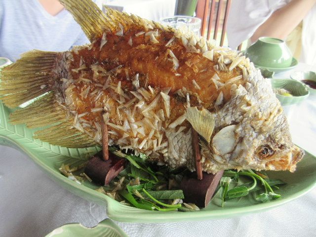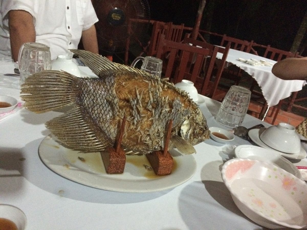 また、メコンデルタ名物の魚料理「エレファントイヤーフィッシュ」も、