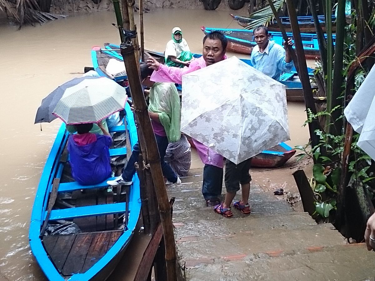 果樹園に着き大雨になり、待てども待てども止む気配がなくレインコートを着て傘をさしてメコン川クルーズをしたのは残念でした。