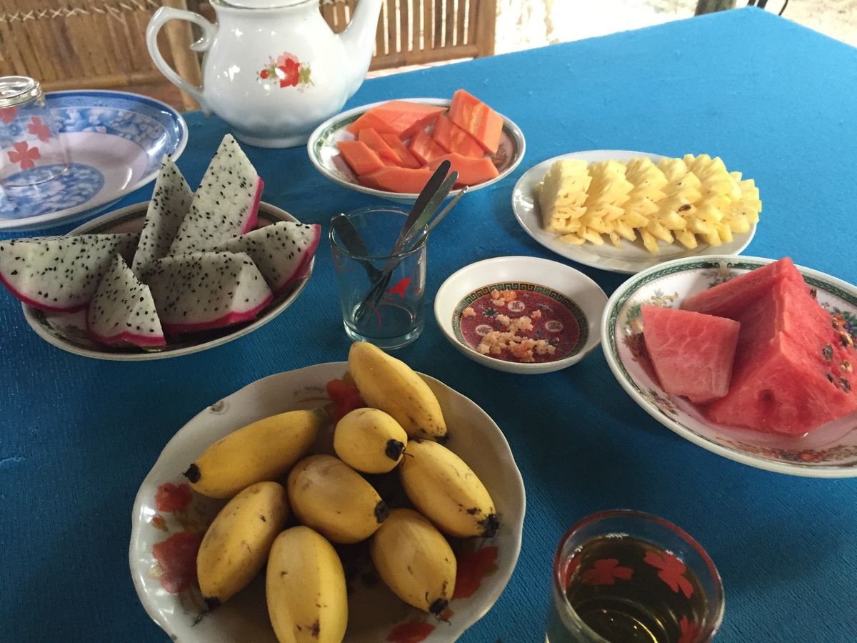 ご飯は、メインが像耳魚(?)みたいな名前の魚で、あとは自分で春巻きする感じでした。