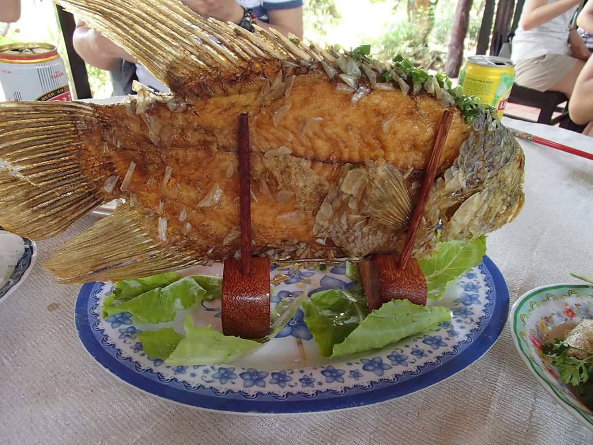 ツアーの内容ですが、メコン川で船に乗るのは15分?くらいですが、その前に、はちみつやココナッツキャンディーの試食や販売があります。色々勧められますが、無理やり買わされることはありませんでした。巨大なニシキヘビとの出会いや地元の方の歌などもあり、楽しかったです。食事は、可もなく不可もなく。揚げ春巻き、生春巻き、麺、チェー(ベトナムのデザート)などが出てきます。飲み物だけ、別料金です。頼まなくても大丈夫です。