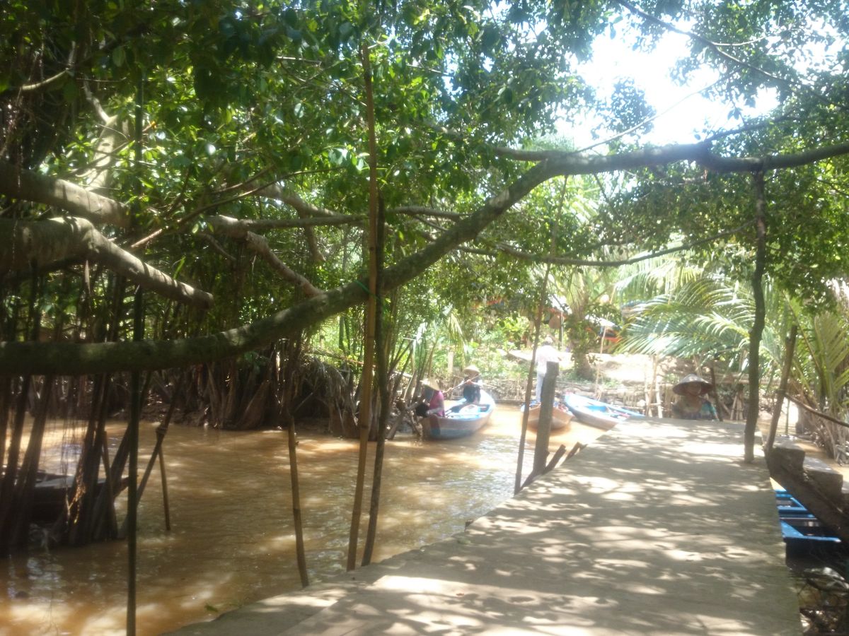 船でまず島に渡り、植物が豊富でそれを散策しながらも楽しめるし、飴つくりや買い物も楽しめました。正直メコン川の大渋滞には驚きましたが、その中をうまくねっていくものだなあと感心しました。そして何より戻ってからのレストランも素敵だし、演出もあり、すごくおいしかったのがよかったです。