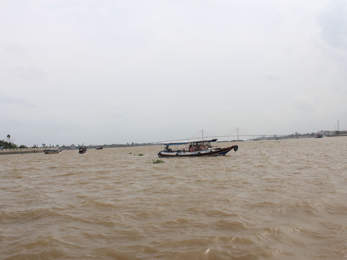 メコン川は、たくさんの観光客であふれていて、川が船で渋滞しているのにとても驚きました。