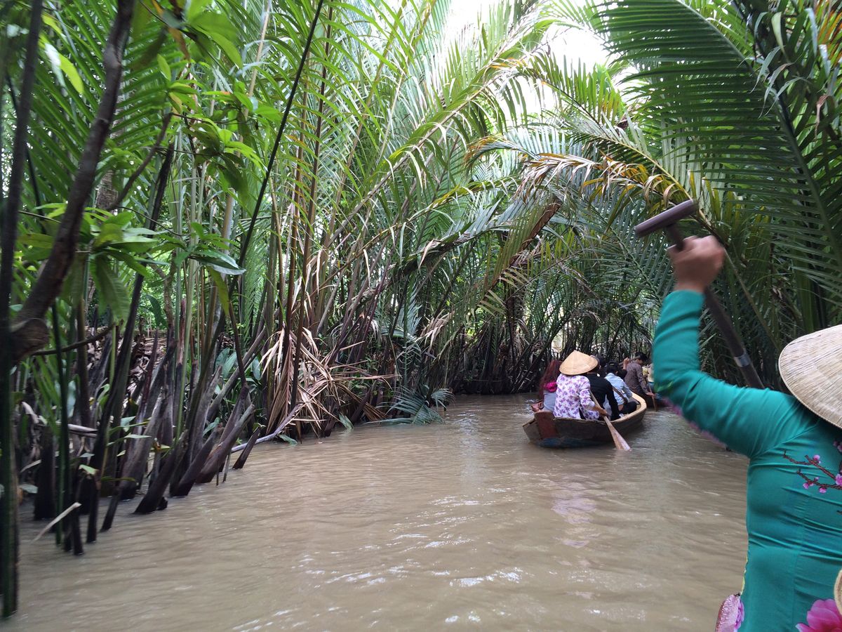 ホテルでピックしてもらいメコンデルタへ。船に乗ったかと思ったらすぐに島に着き
