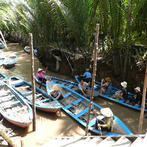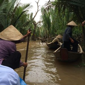 メコン川を一目みたくて参加しました。この川の色が砂のせいで水質はいいと聞き、きれいな砂浜色に見えたのが不思議でした。中州の中は舗装道路はほとんどなく、素朴な村中のようで昔にタイプスリップしたような気分でした。蜂蜜ティーをいただき、思い切って大蛇も首に巻いてもらいました。ねっとりと冷たくなんともいえない感触でした。川下りはボートが軽くすいすい走るので期待以上に楽しかったです。ランチのエレファントフィッシュの唐揚げは少し食べにくかったですが食感がしっかりしていてよかったです。ホーチミンの町中とは全く違う素朴なベトナムの人々の様子を垣間みれてよかったです。
