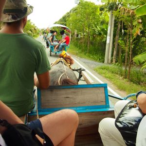 参加者が少なく、早起きしなくてもいいとの理由で、午後発のこのツアーにして大正解!午前中は、朝食やショッピングで街を散策し、ランチ食べてからツアーに参加しました。5人+ガイドさんで和気あいあいの雰囲気。街の喧騒を離れ、着いた所は、素朴な村。鶏や放し飼いのワンコ(大丈夫、人慣れしていて怖くありません。と言うより犬好きにはたまらない)に出迎えられ、フルーツを頂き、本物のジャングルクルーズをし、ハンモックで横になってみたりして、子供に帰ったよう。途中村で、はちみつやココナッツキャンディーの試食と販売はありますが、押し付けがましくもなく、しかも安いので、つい手が出てしまいました。