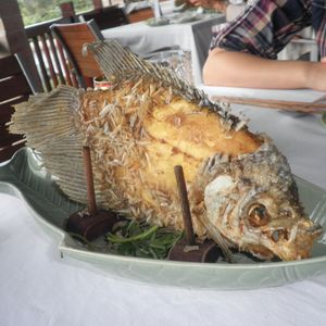 夜ご飯もジャングルの中のようなレストラン。夕暮れの中、満月が出ていてムード満点、美味しかったです。そして、船に乗ってホタルを見に。満月だったのが残念でしたが、でも沢山見られました。