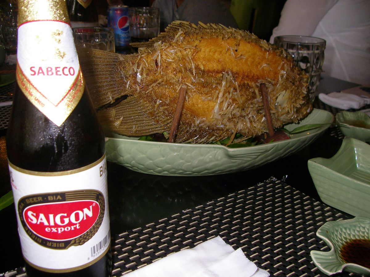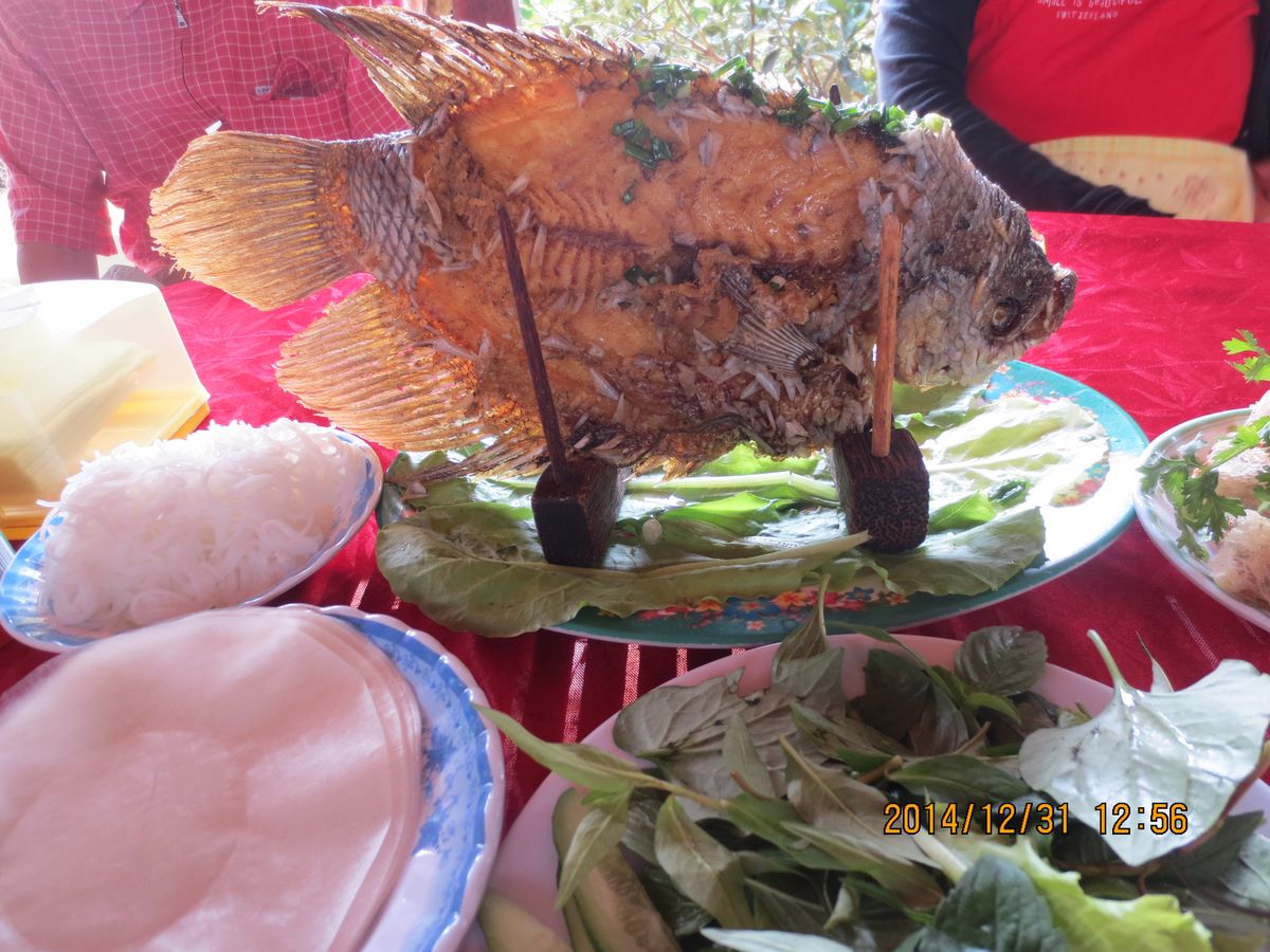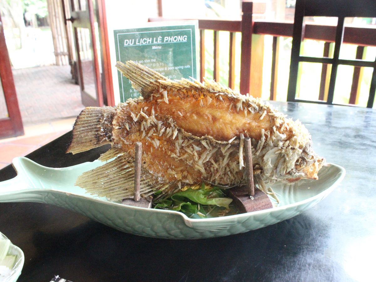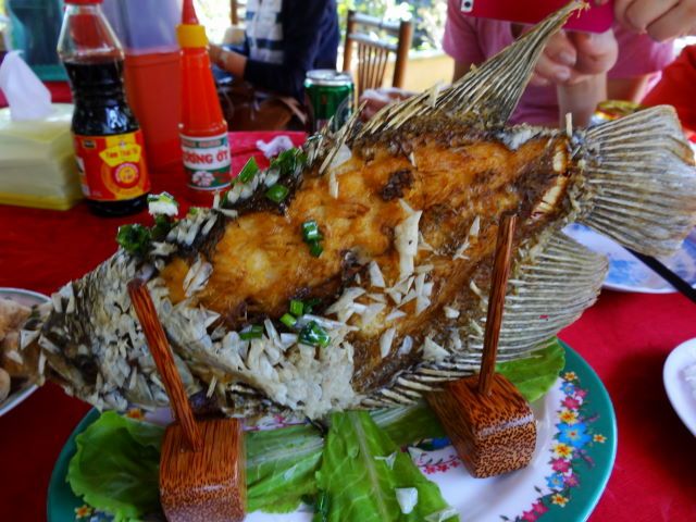 昼ごはんにメコンデルタツアー定番のエレファントフィッシュの食べられたし