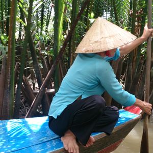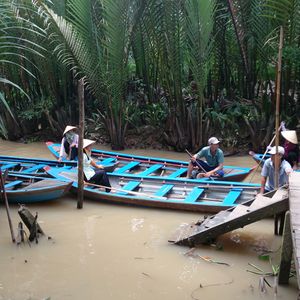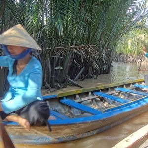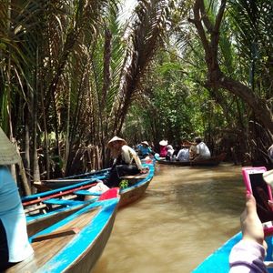 日本語堪能なガイドのお兄さんが道中ベトナムについていろいろと説明してくれます。メコン川は気持ち良かったです。対岸の村ではお姉さん達が対応、ガイドさんは側からいなくなりお土産をいろいろ勧めてくるのでツアーと提携している観光客目当てという雰囲気でした。チップのつもりでお菓子だけ買いました。小舟も乗れるし(チップ用の細かいドンを忘れない様に)一人参加費も変わらず良いツアーだと思います。ガイドさん曰く何回も参加する人もいるらしいです。食事もなかなか良かったです。ガイドさんは独身らしく若いお姉さん達にはやたら話しかけたり写真を撮ってあげていました 苦笑。