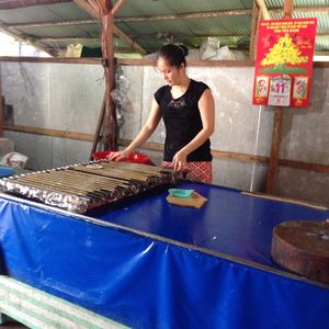 暗い気分になりそうな場所ですが、ところどころライスぺ-パーやタイヤのサンダル?づくりを見れたり、タロイモの試食があったりと息抜きがりました。