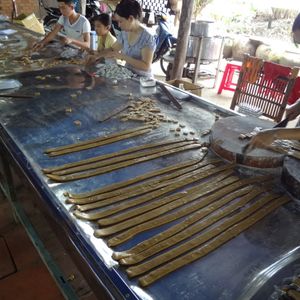 ところでツアーは全体的に大満足です。現地の生活が垣間見え、手漕ぎボートは目線が水面に近く昔の舟はこんな感じ?と実感できたのでよかったです。ココナッツキャンディー作りの見学も出来立てを試食させてくれて美味しかったです。蛇を首に巻かせてくれて娘がチャレンジしました。ちょっと怖がってたけど、よい写真が撮れました。なかなか日本では経験できませんから。昼食はエレフャントフィッシュを生春巻きでいただきました。美味しく食べれましたよー。ベトナムの歴史の話や、現在の経済事情とか、いろいろな方向の話をしてくださったガイドさんもとてもよかったです。同じ年の子供さんがおられるというのでとても親切にしてもらい子供も喜んでいました。