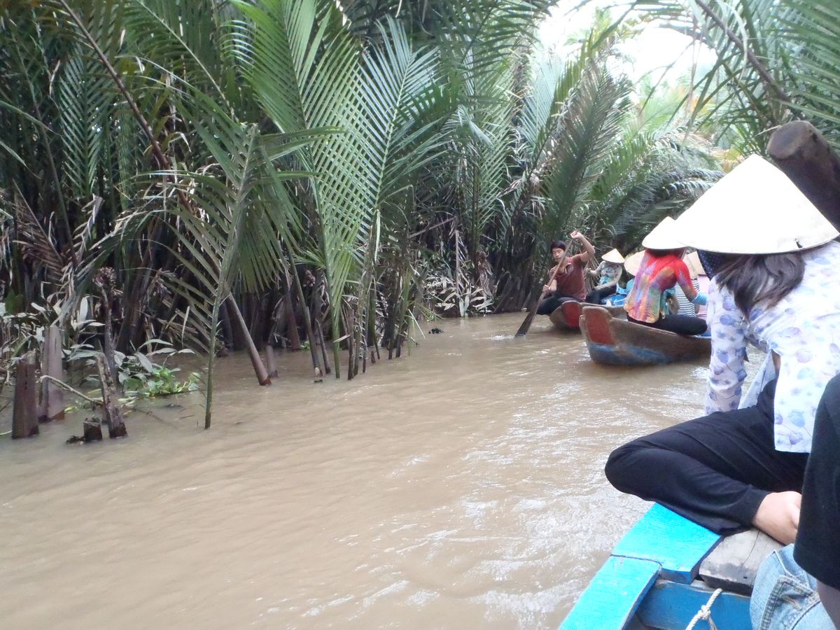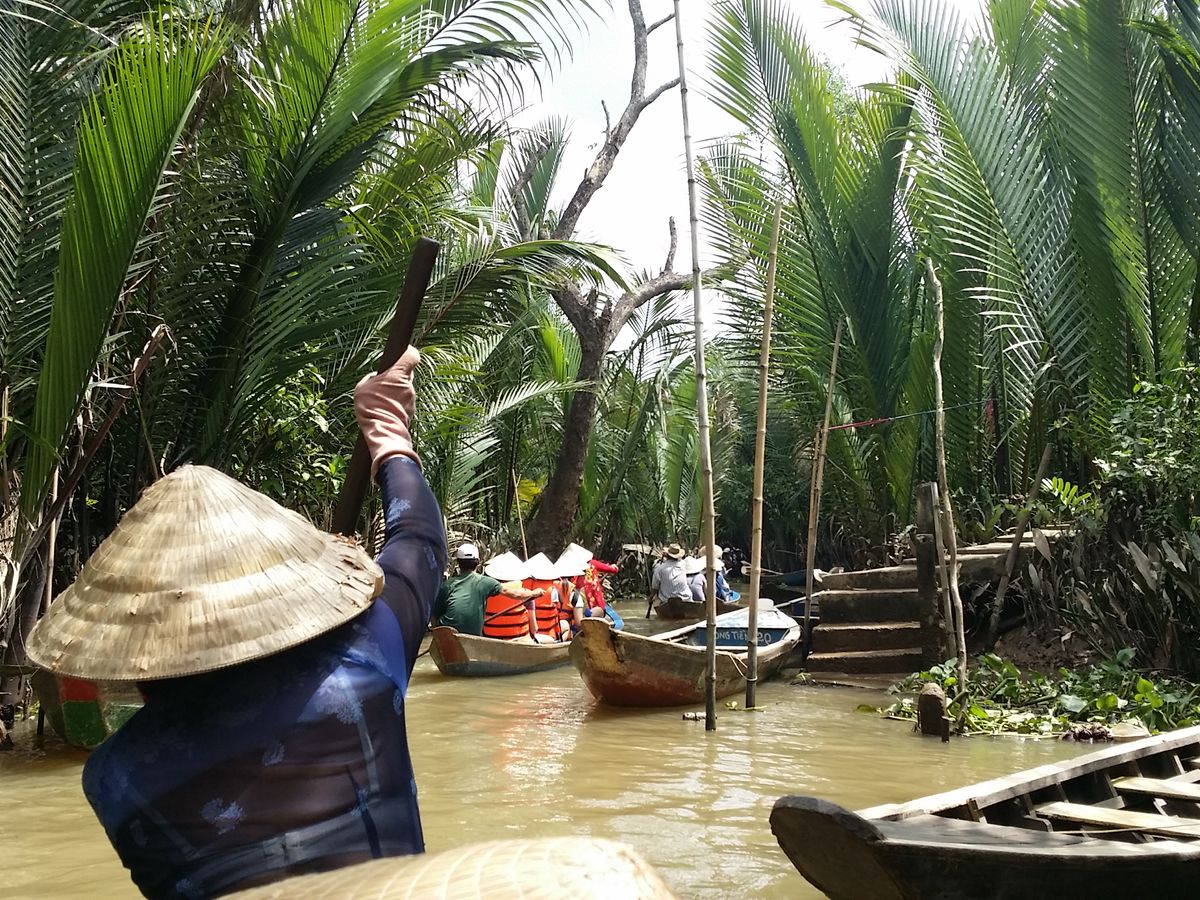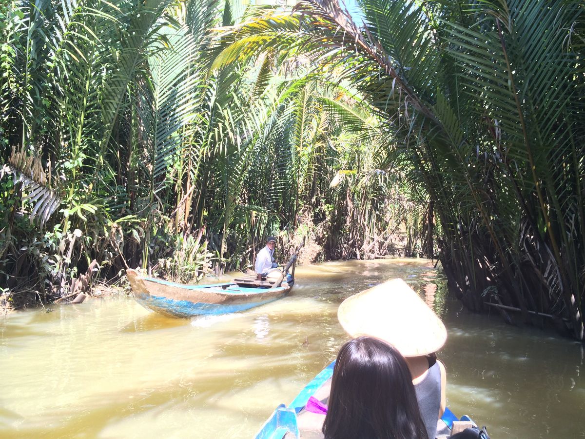 メコンデルタクルーズでは、カヌーによる川下りでスリルを味わうことができ、カヌーから見える岸際での現地の生活が垣間見れてよい体験になりました。ただ、川下りの土産物屋で水を購入しようと値段をきいたら「2$!」とぼったくられるので、水は持参したほうがよいです。