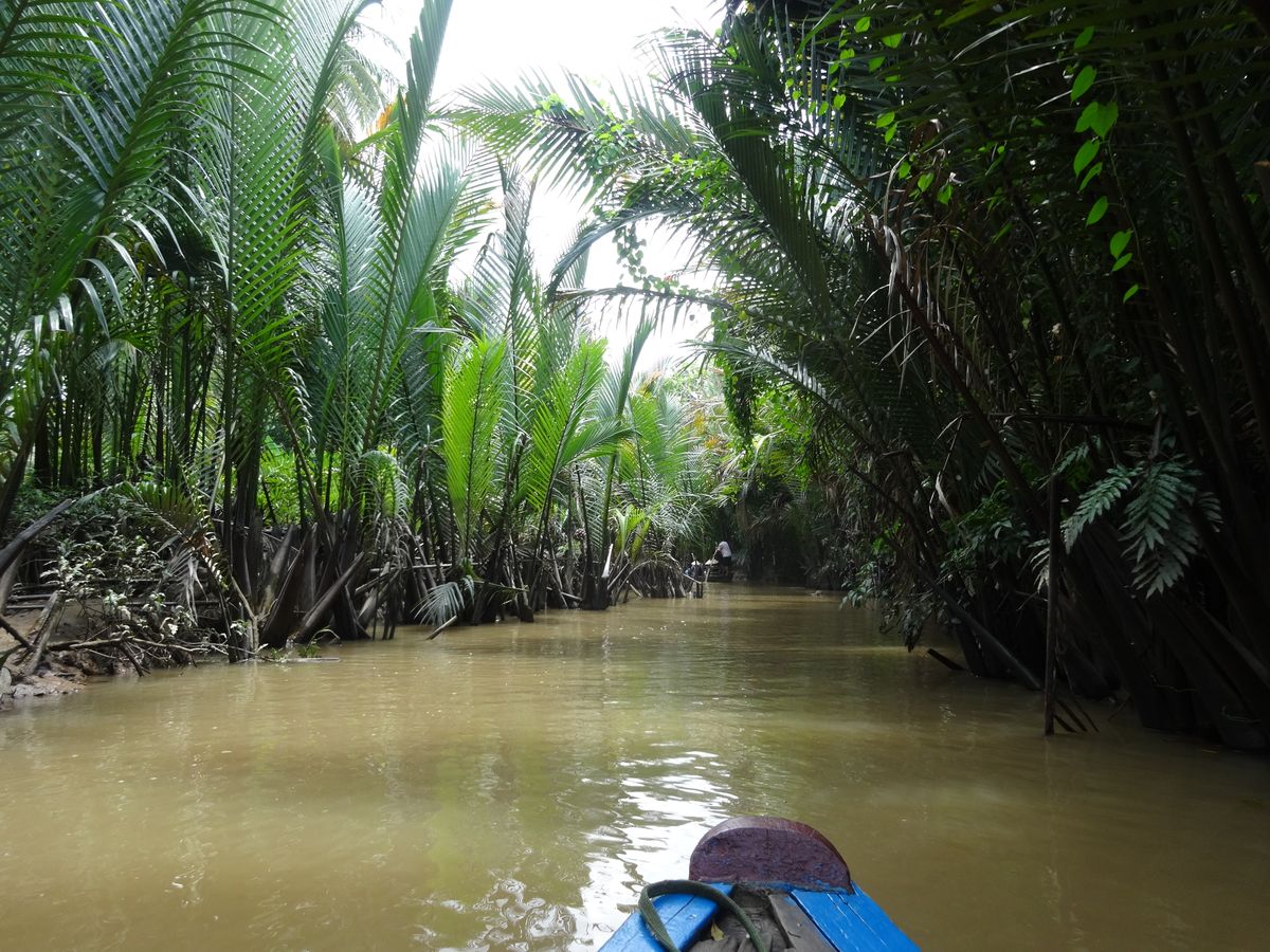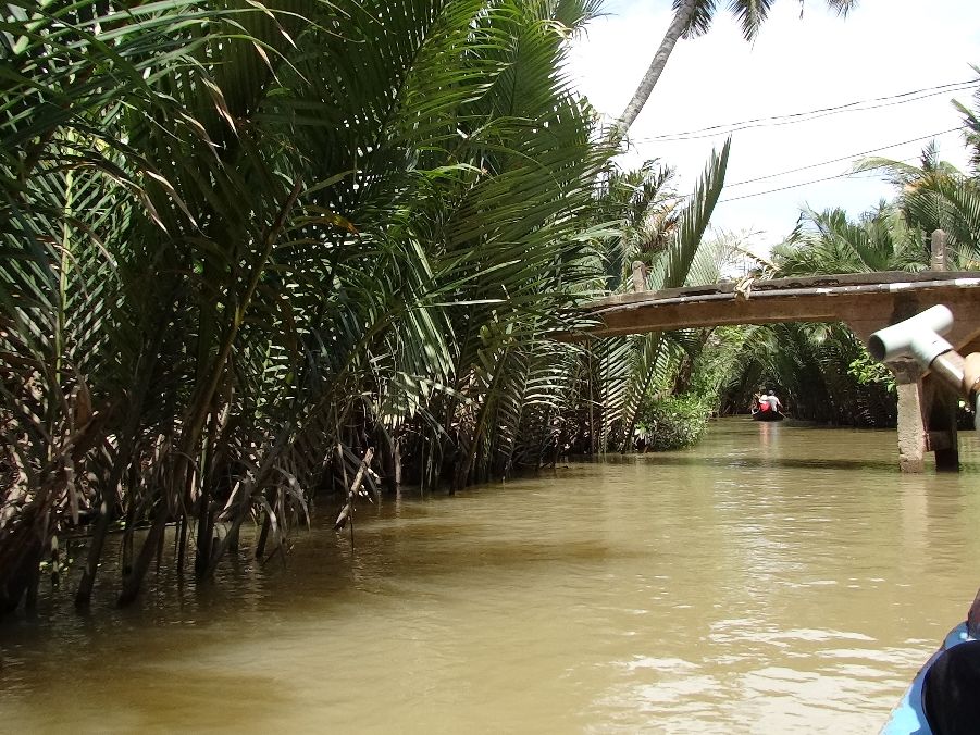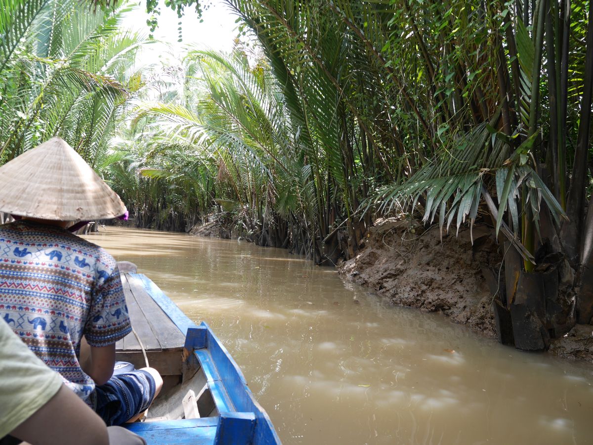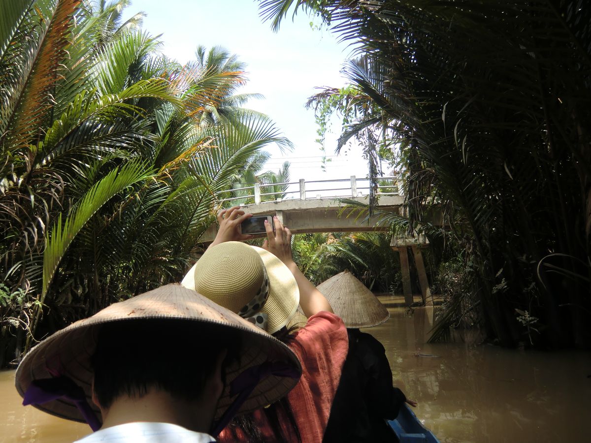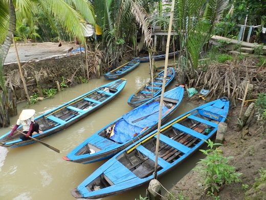 ホーチミンの都会から離れ、約一時間半で到着。小舟に揺られ、のんびりとした時間を過せて