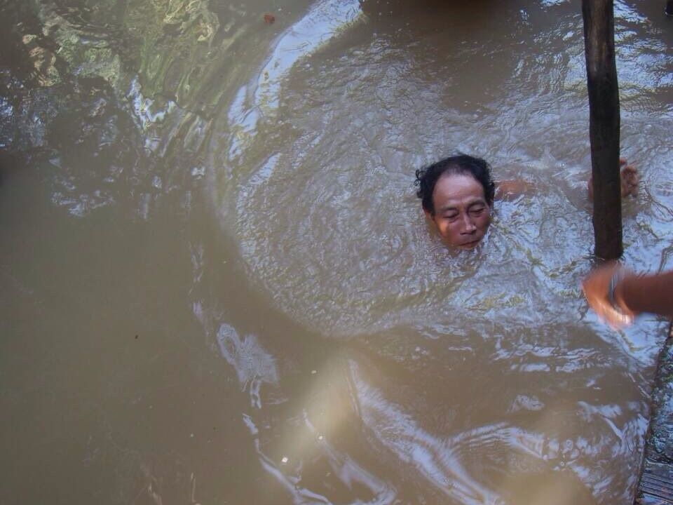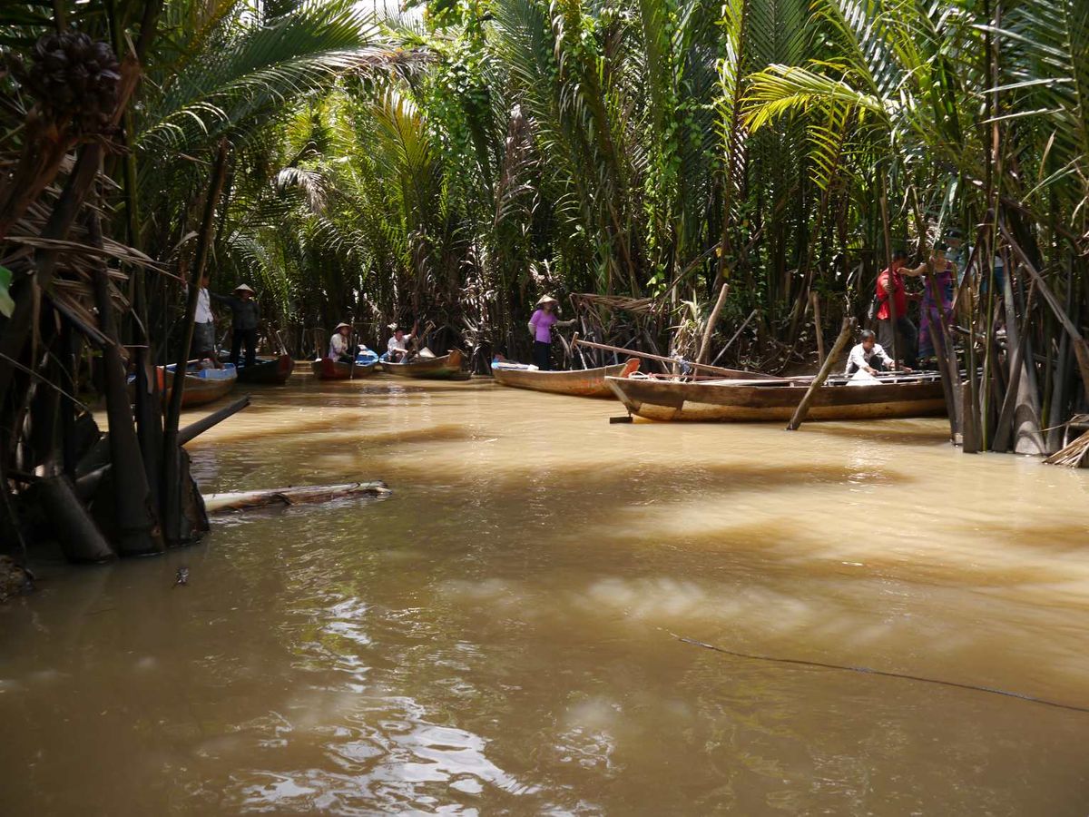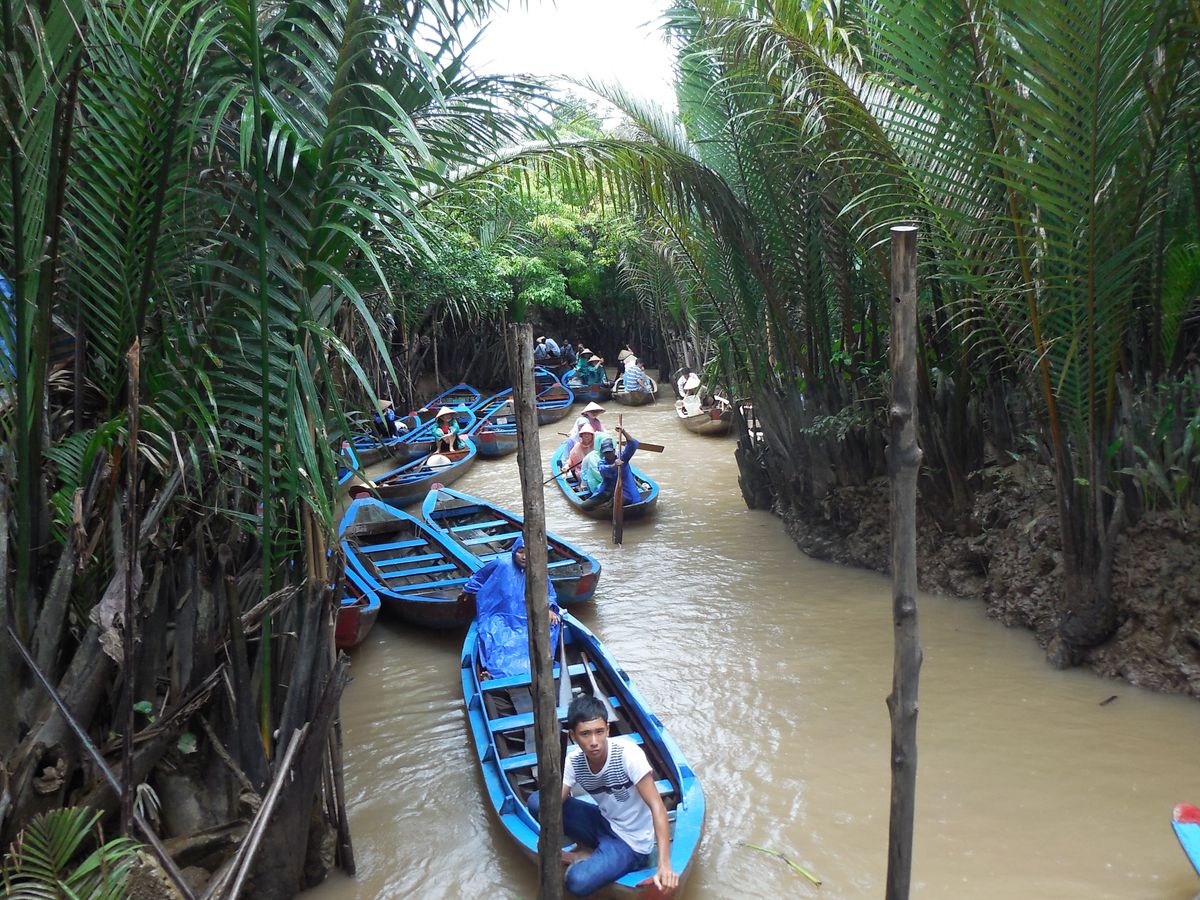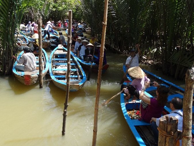 ホーチミンの都会から離れ、約一時間半で到着。小舟に揺られ、のんびりとした時間を過せて