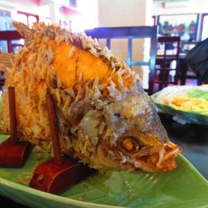 ランチも想像以上の豪華料理でした。メインの有名な魚?は私はチョット苦手でした。川魚なんでしょう、少し臭みがあって…