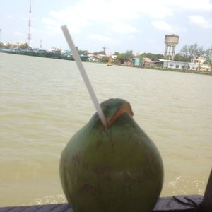 手漕ぎボートから、大きなボートに乗り移るのがなかなか怖かったです。かえりのボートではココナッツジュースも振る舞われました(味はイマイチでした)