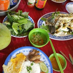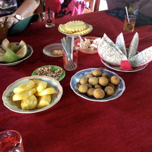 メコン郷土料理の象耳魚やライスボールなどボリューム満点の昼食となっており、