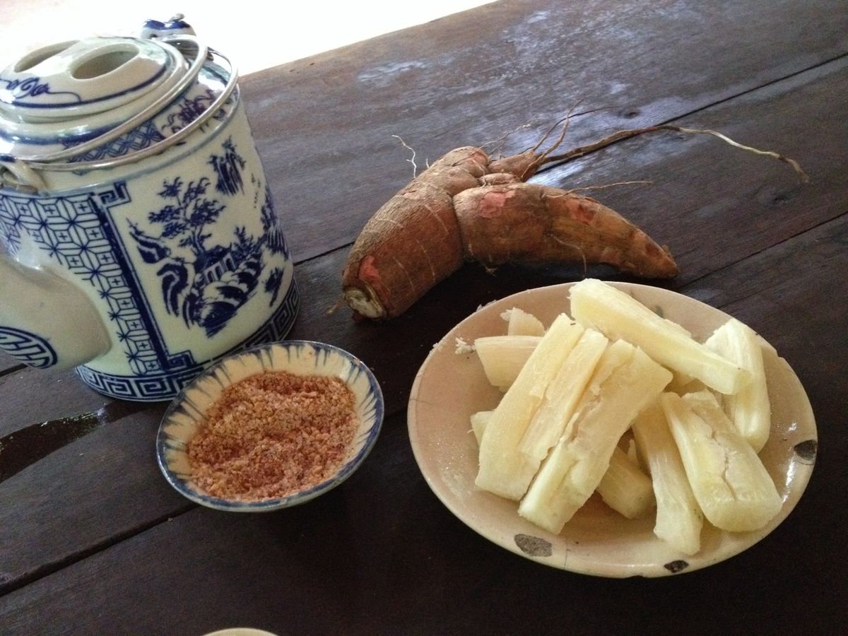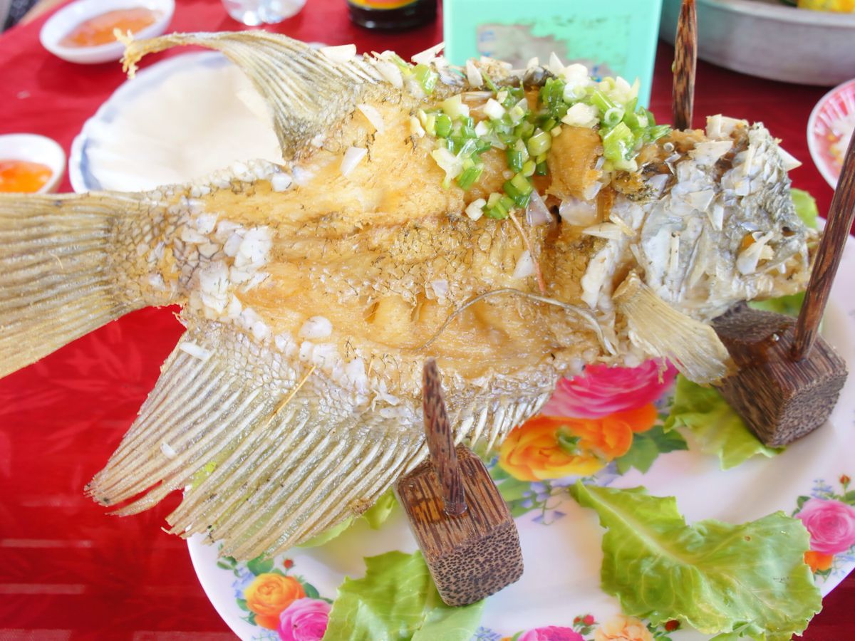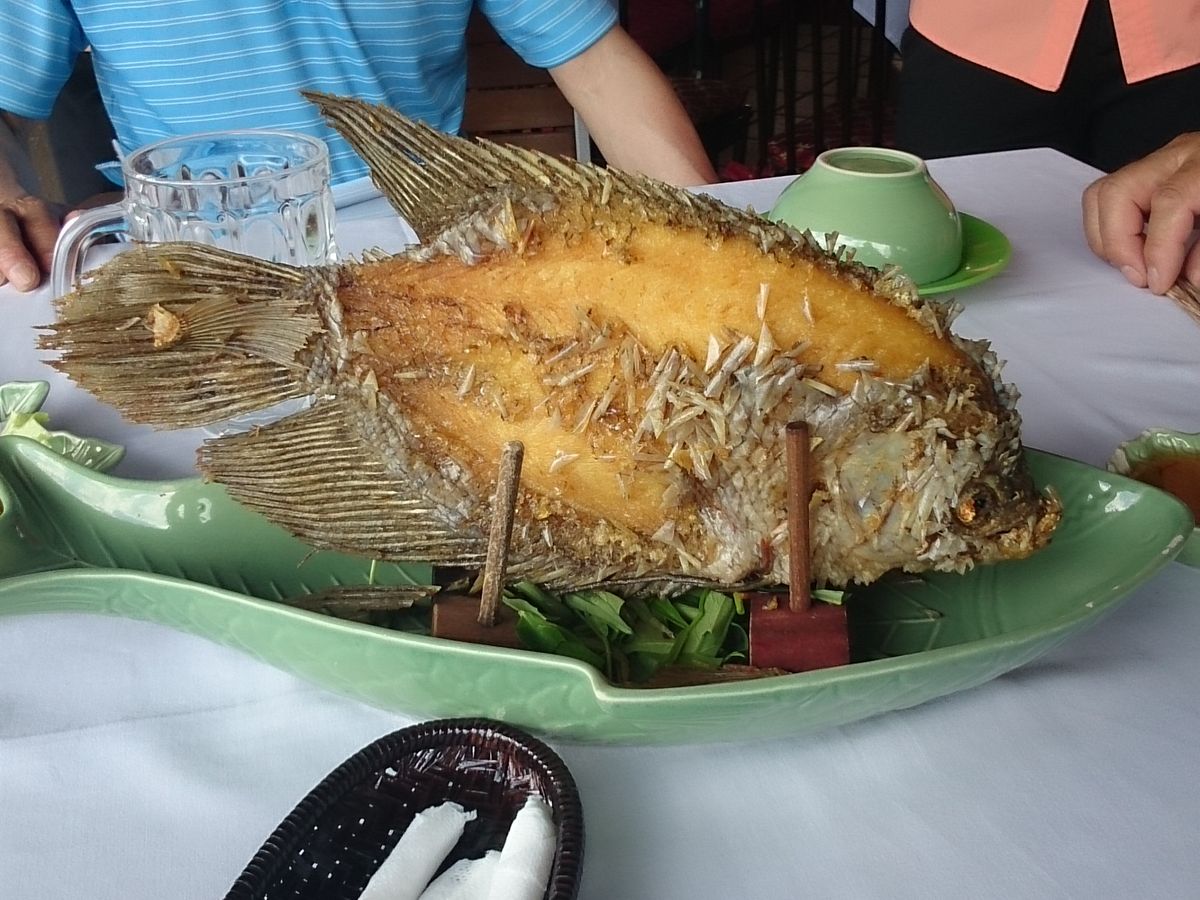その後昼食で象耳魚をライスペーパーに巻いて食べます。タレや香草と一緒に食べれば臭みなくおいしいです。