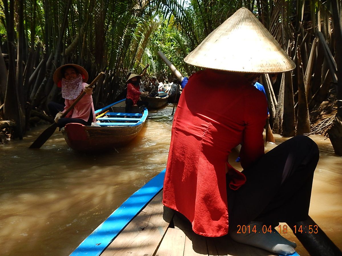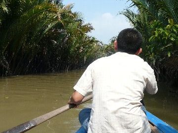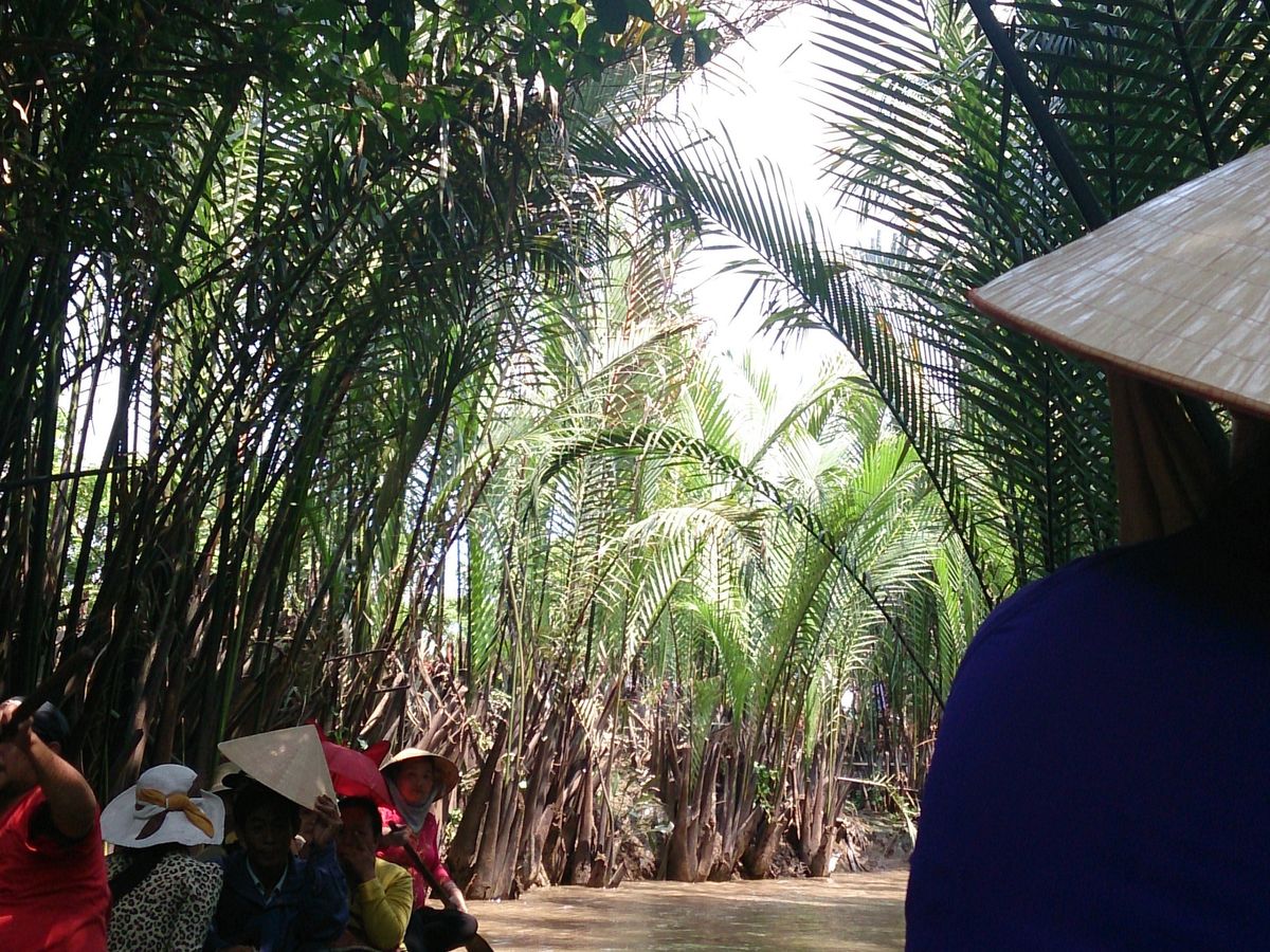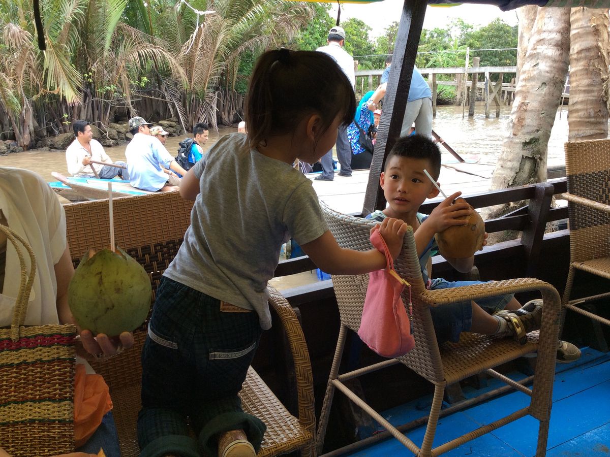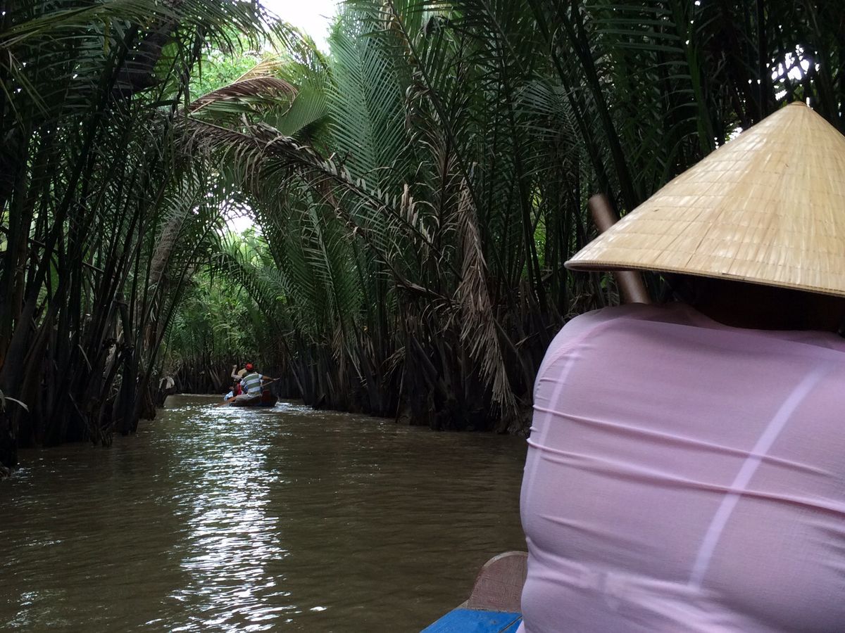 混濁したメコン川を渡り、観光化されてはいますが島で蜂蜜、ココナッツ飴、フルーツの試食をし、民謡?を聞き、10分弱ですが小舟に乗ってニッパヤシが生える水路を進む、とても楽しい観光ができました。