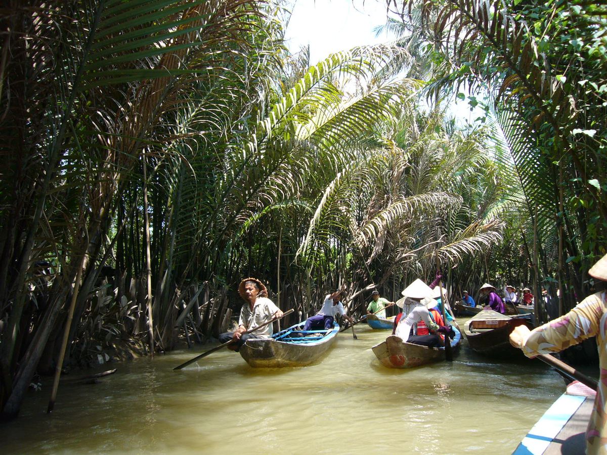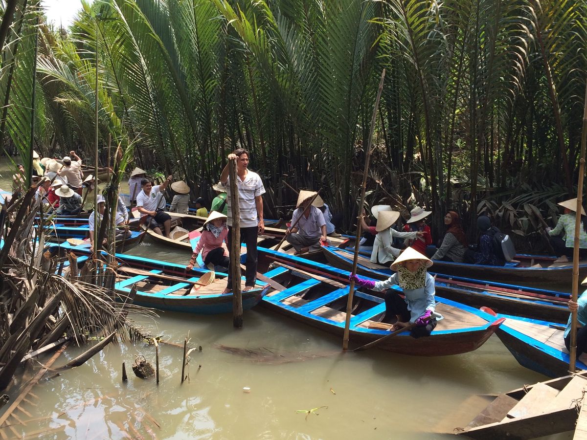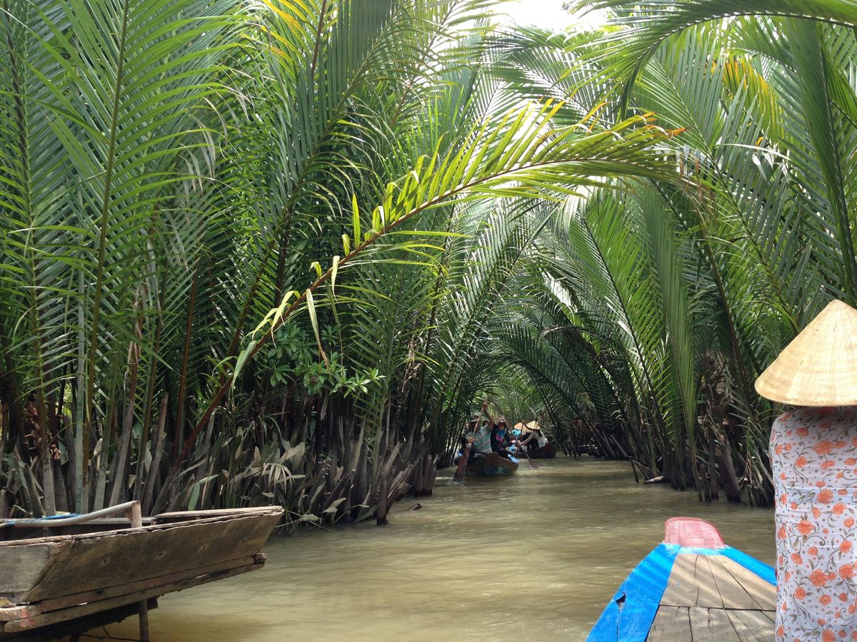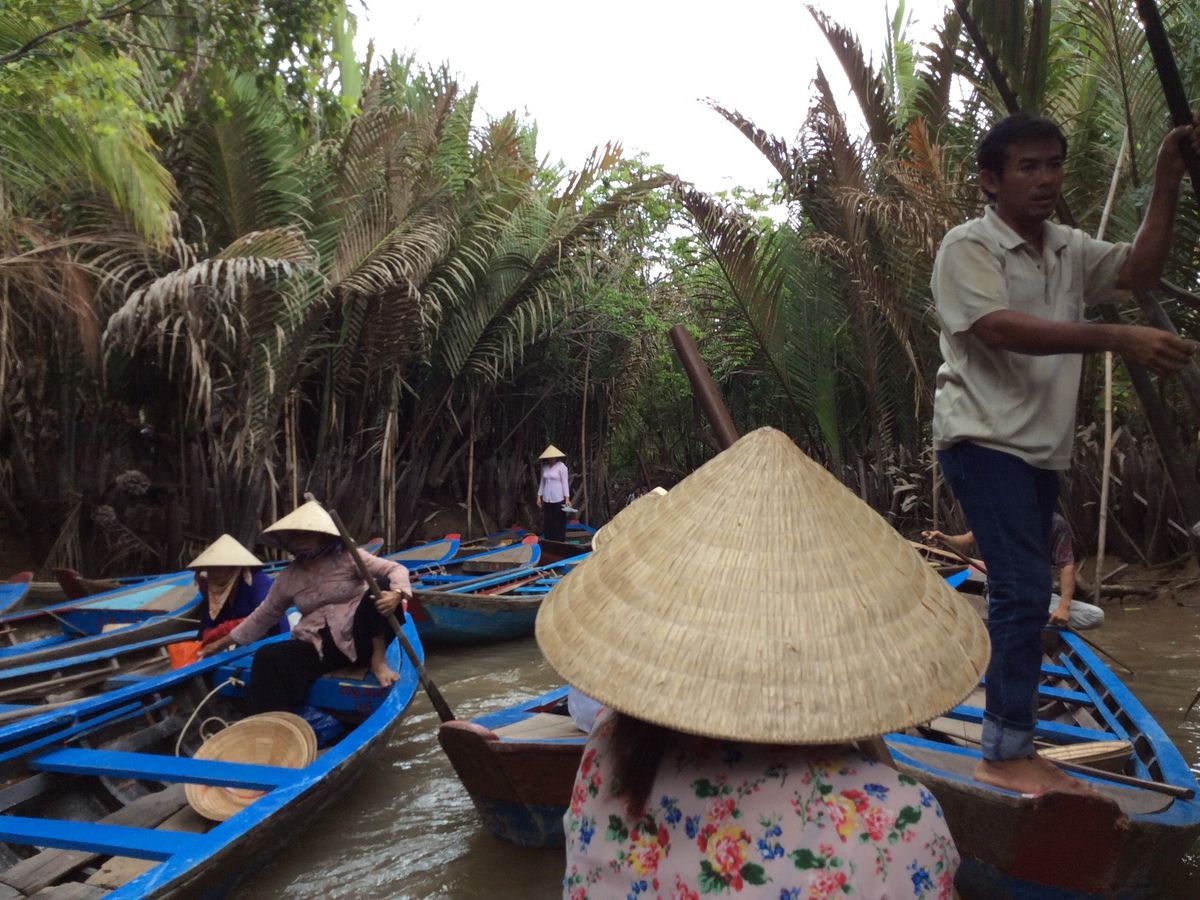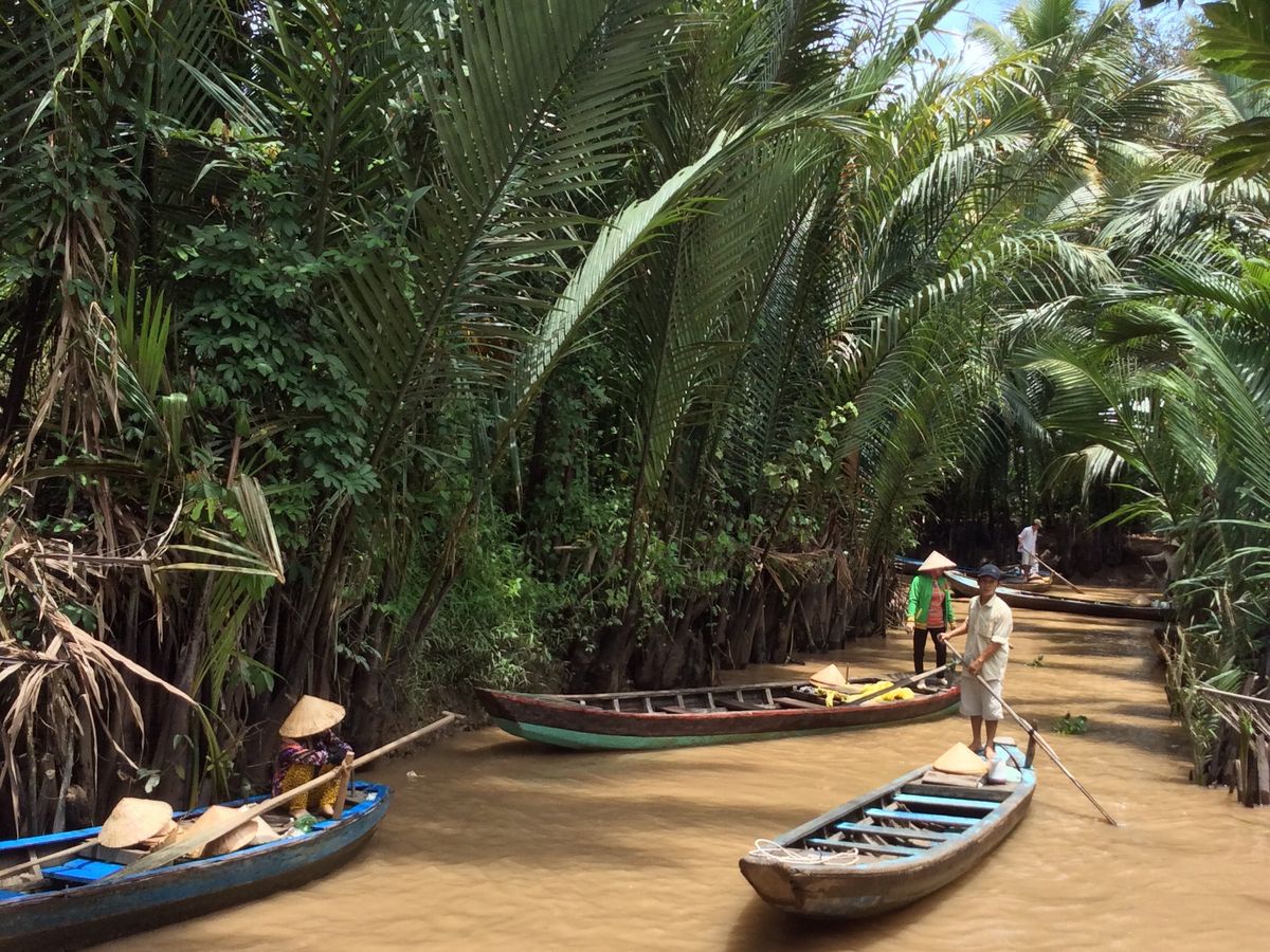 混濁したメコン川を渡り、観光化されてはいますが島で蜂蜜、ココナッツ飴、フルーツの試食をし、民謡?を聞き、10分弱ですが小舟に乗ってニッパヤシが生える水路を進む、とても楽しい観光ができました。